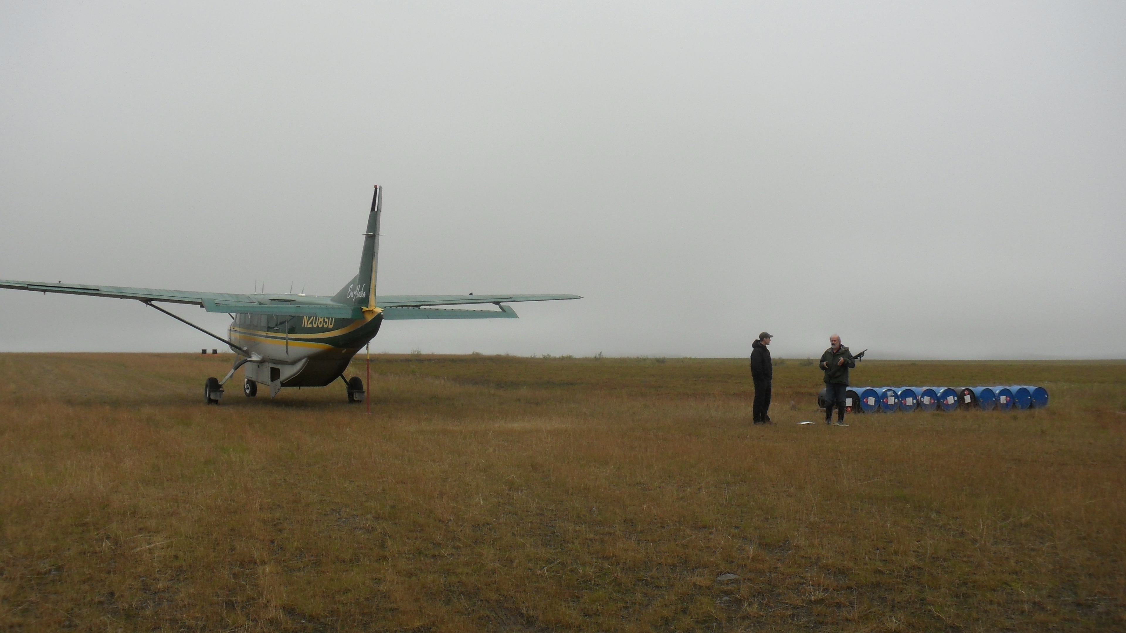 Fritz and the Cessna pilot discuss the team's field work. Barrow, Alaska.