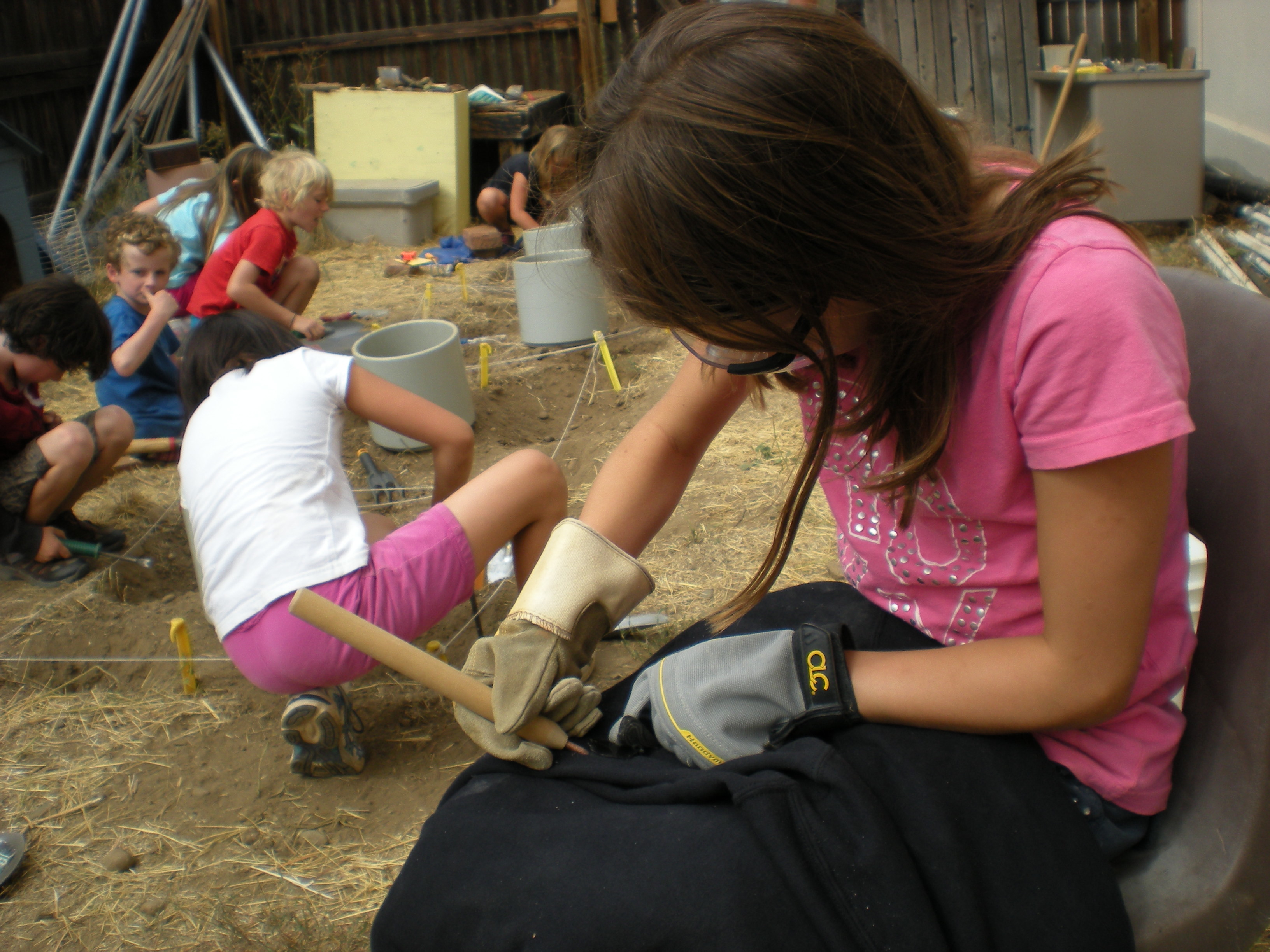 Karl Horeis: "Lauren, a third grader, tried her hand at knapping a stone tool from Oregon obsidian. Each student made their own tool, which I dulled on the concrete before sending home." Wheat Ridge, Colorado.