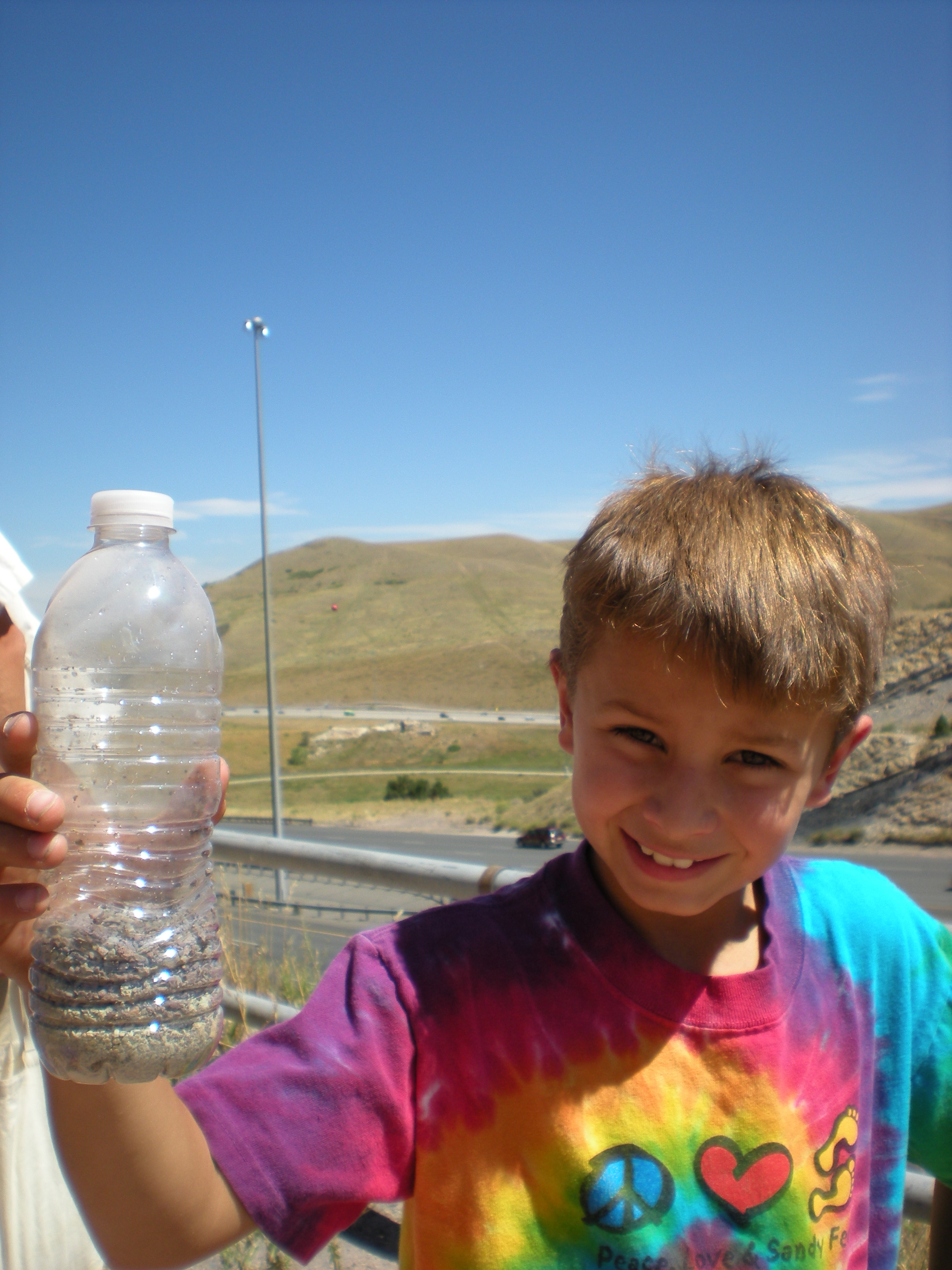 Linus, one of Karl Horeis' fourth graders, is excited to show the layers of Jurassic sediment he has collected from a road cut in the foothills of the Rocky Mountains. Golden, Colorado.