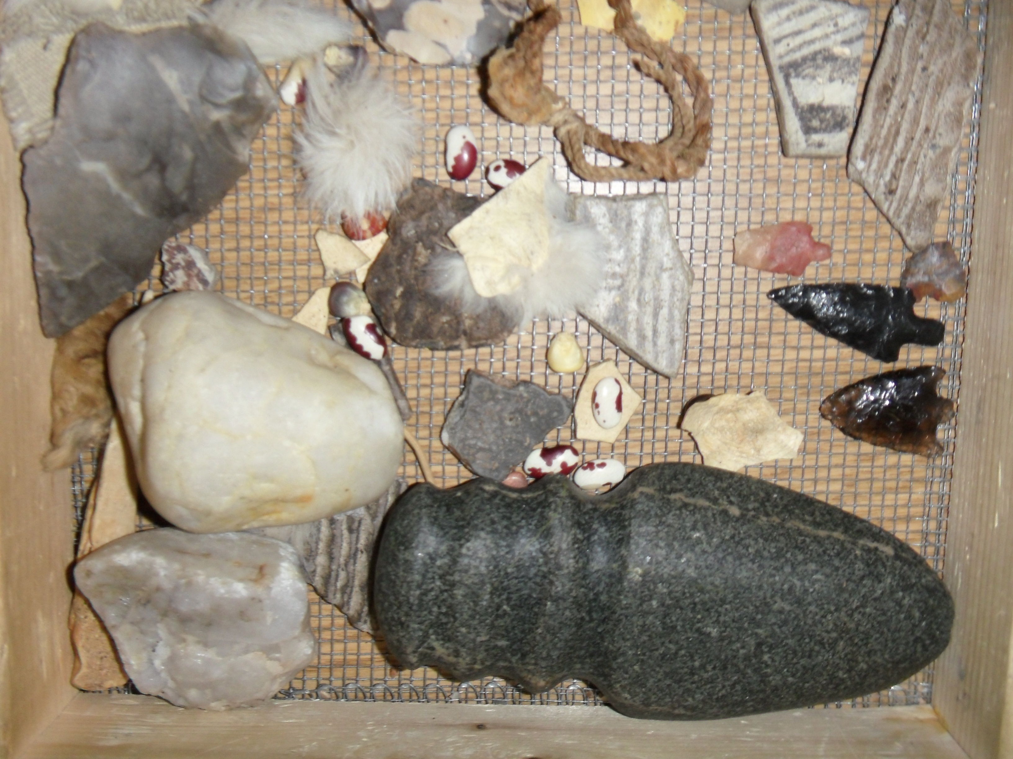Karl Horeis: "Look at this incredible stone ax head and these beautiful obsidian arrowheads that the students found. There are also bits of rabbit pelt, pottery shards showing coil technique, corn husks and even some yucca-fiber string." Foothills Academy, Wheat Ridge, Colorado.
