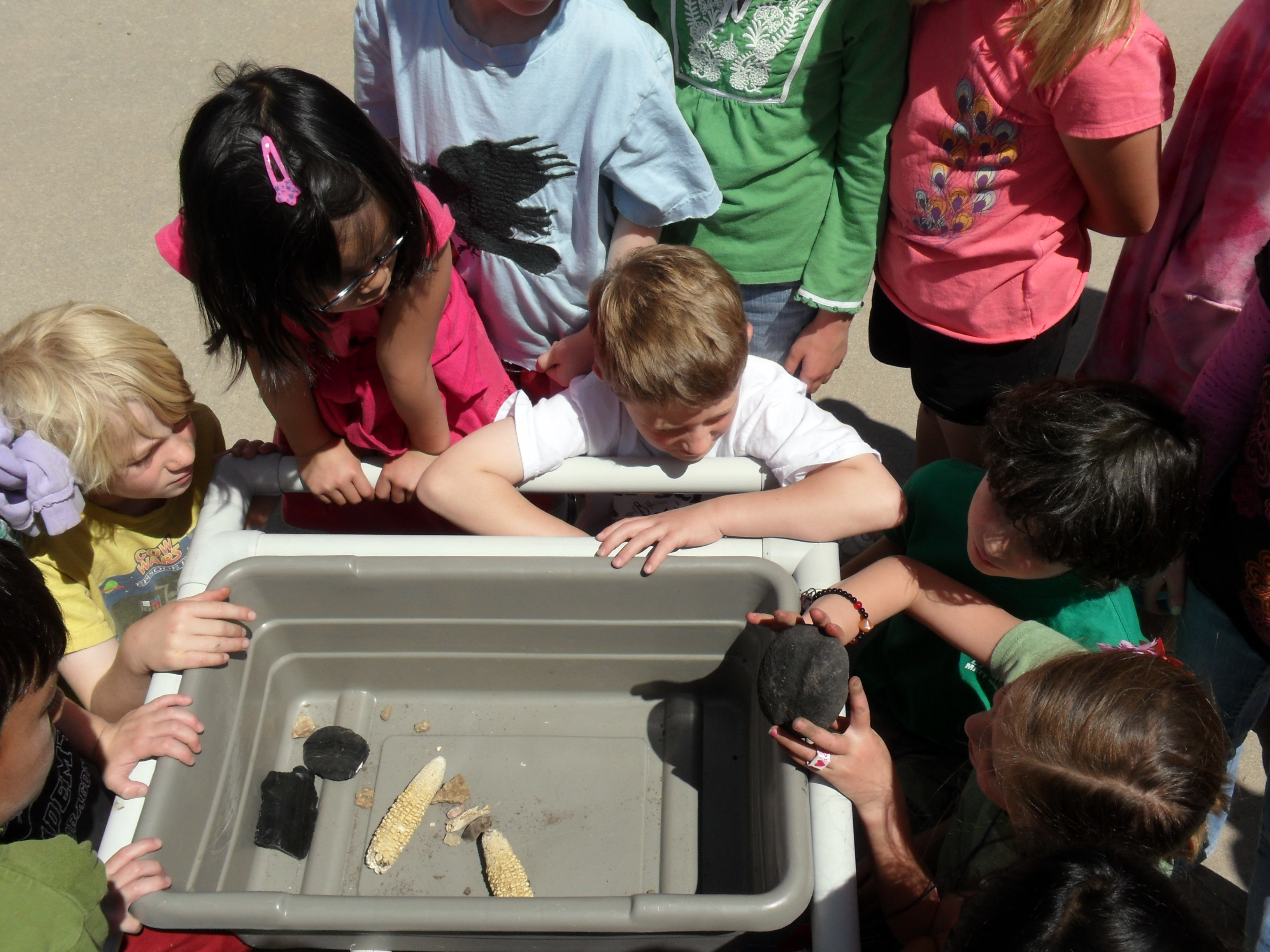 The students collected their finds in these boxes to inspect them and make theories about what they were used for. Foothills Academy, Wheat Ridge, Colorado.