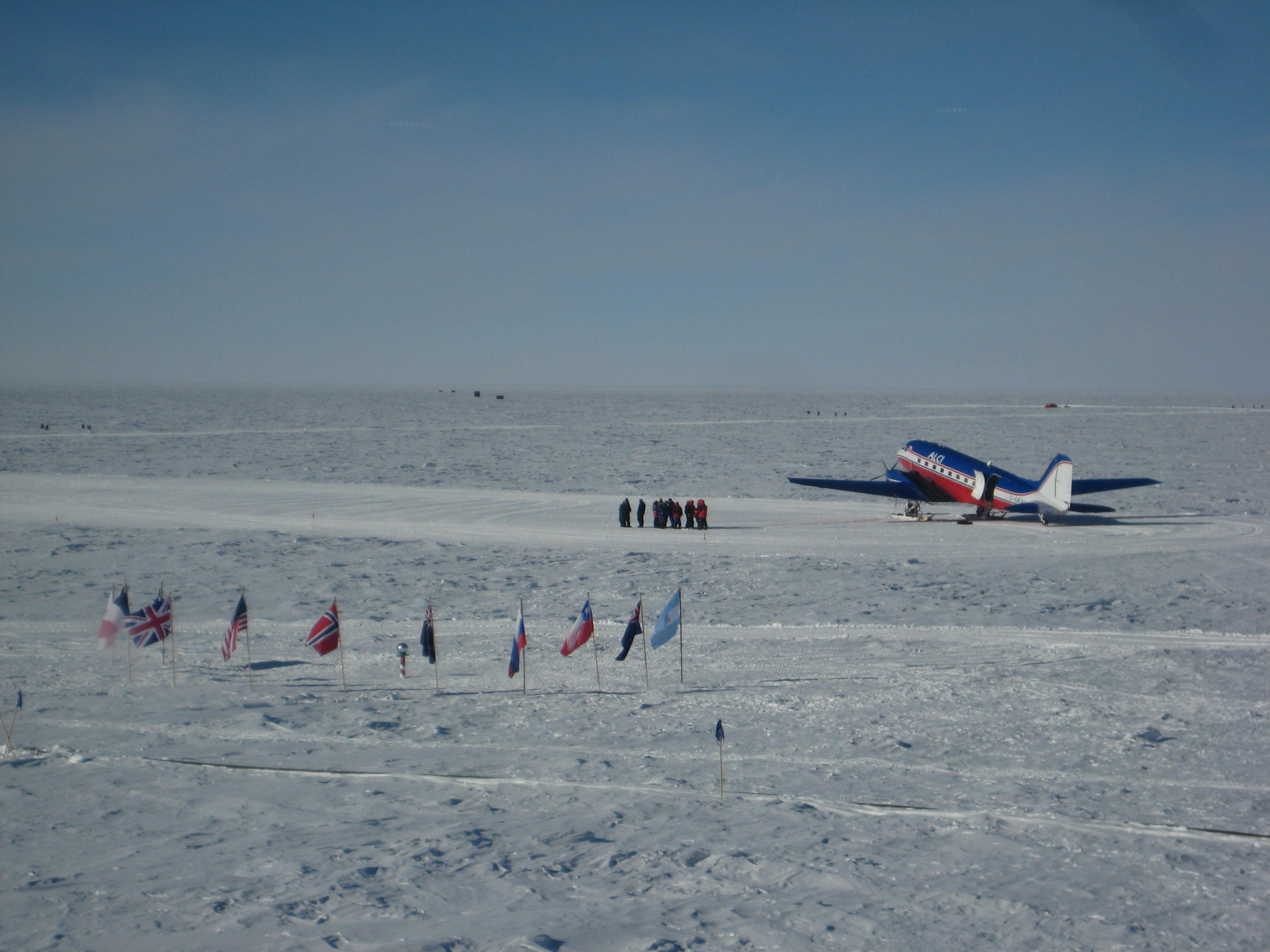 Tourists check out the South Pole from their plane. Amundsen–Scott South Pole Station, Antarctica.