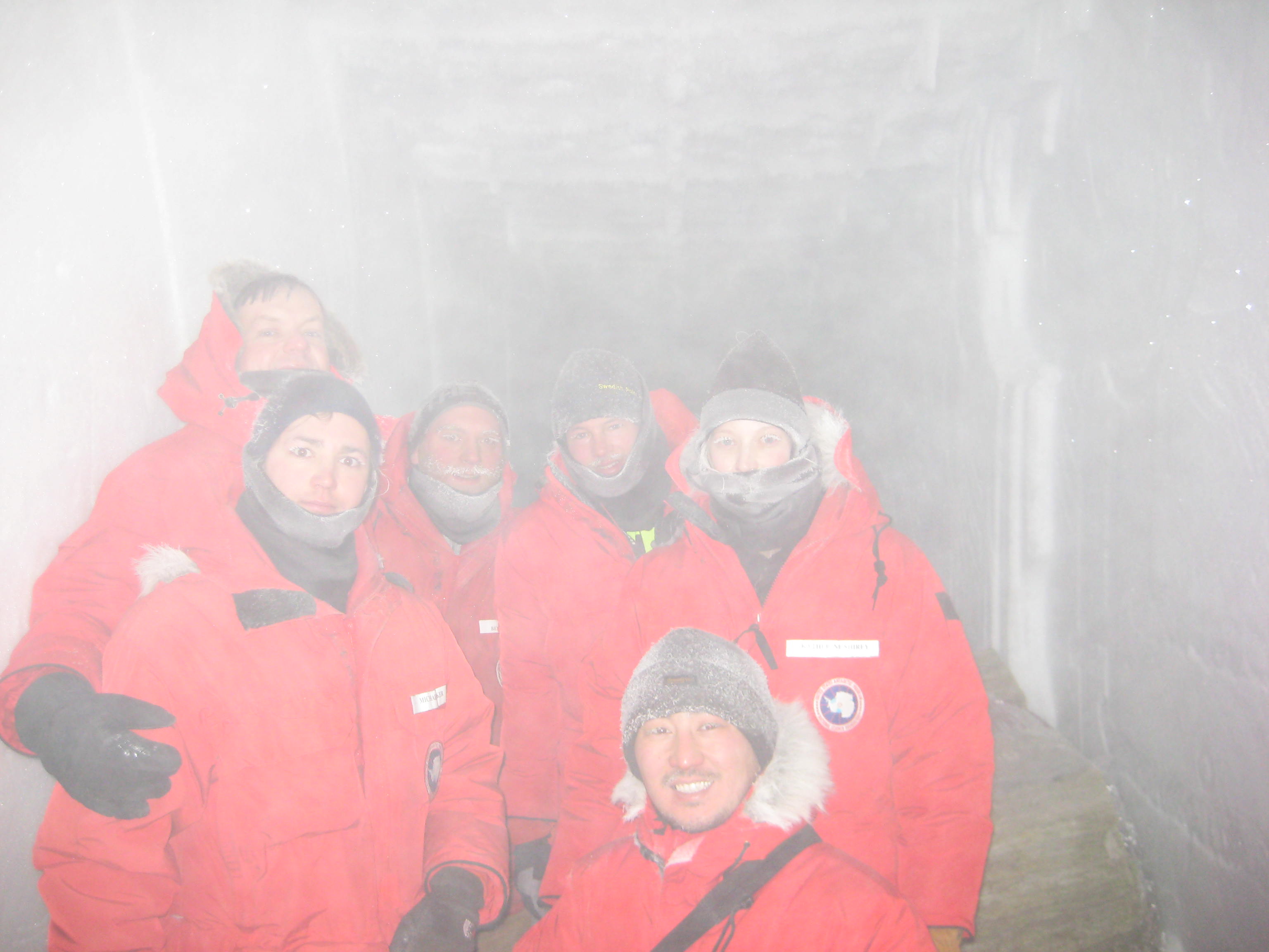 L to R: Martin, Mike McCrae, Ben Stock, Matthias Danninger, Bakhtiyar Ruzybayev, and Katey Shirey. Amundsen–Scott South Pole Station, Antarctica.