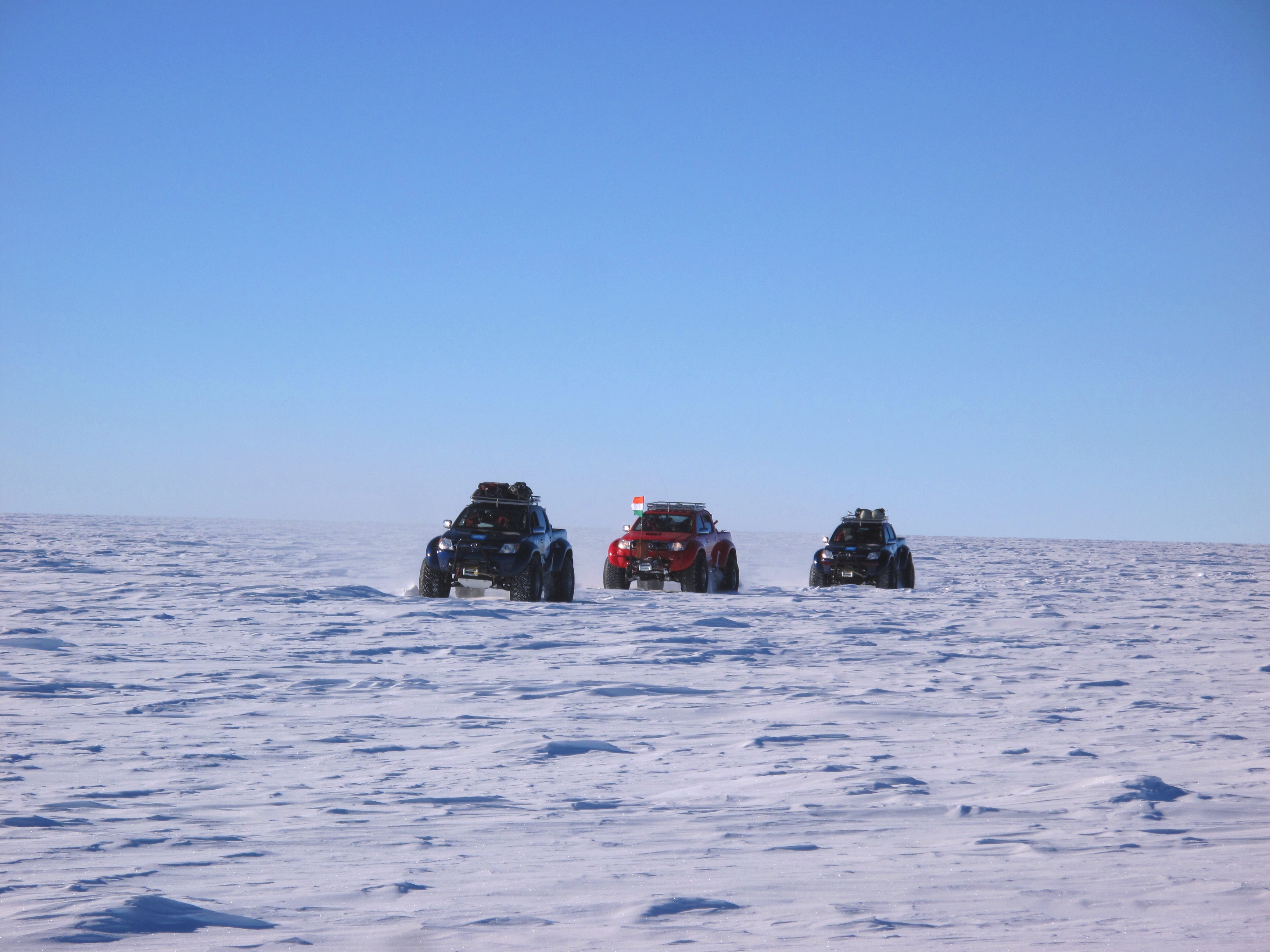 Katey Shirey: "The Indian traverse arrives at South Pole." Amundsen–Scott South Pole Station, Antarctica.