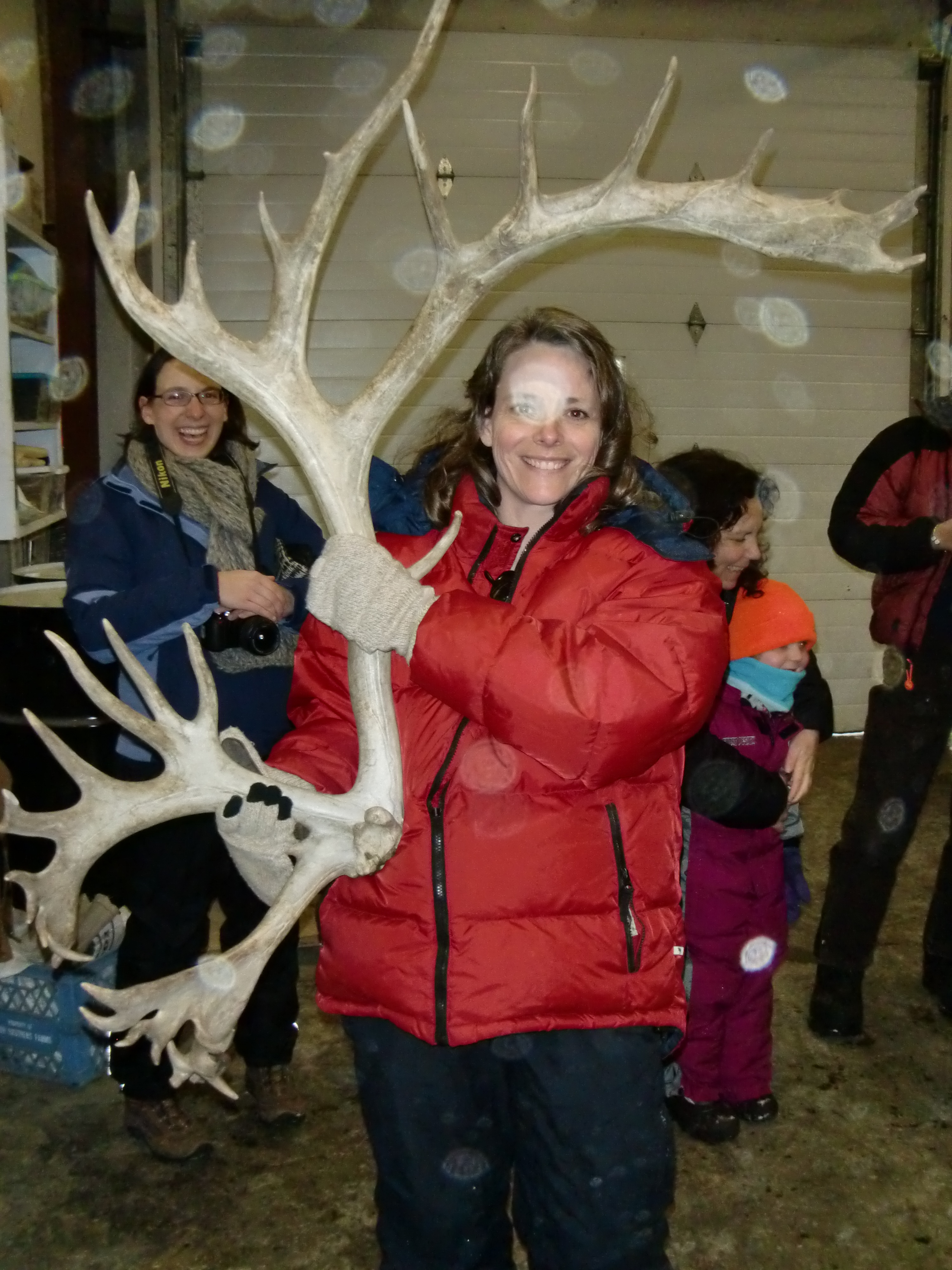Alex Eilers holds a reindeer antler. Fairbanks, Alaska.