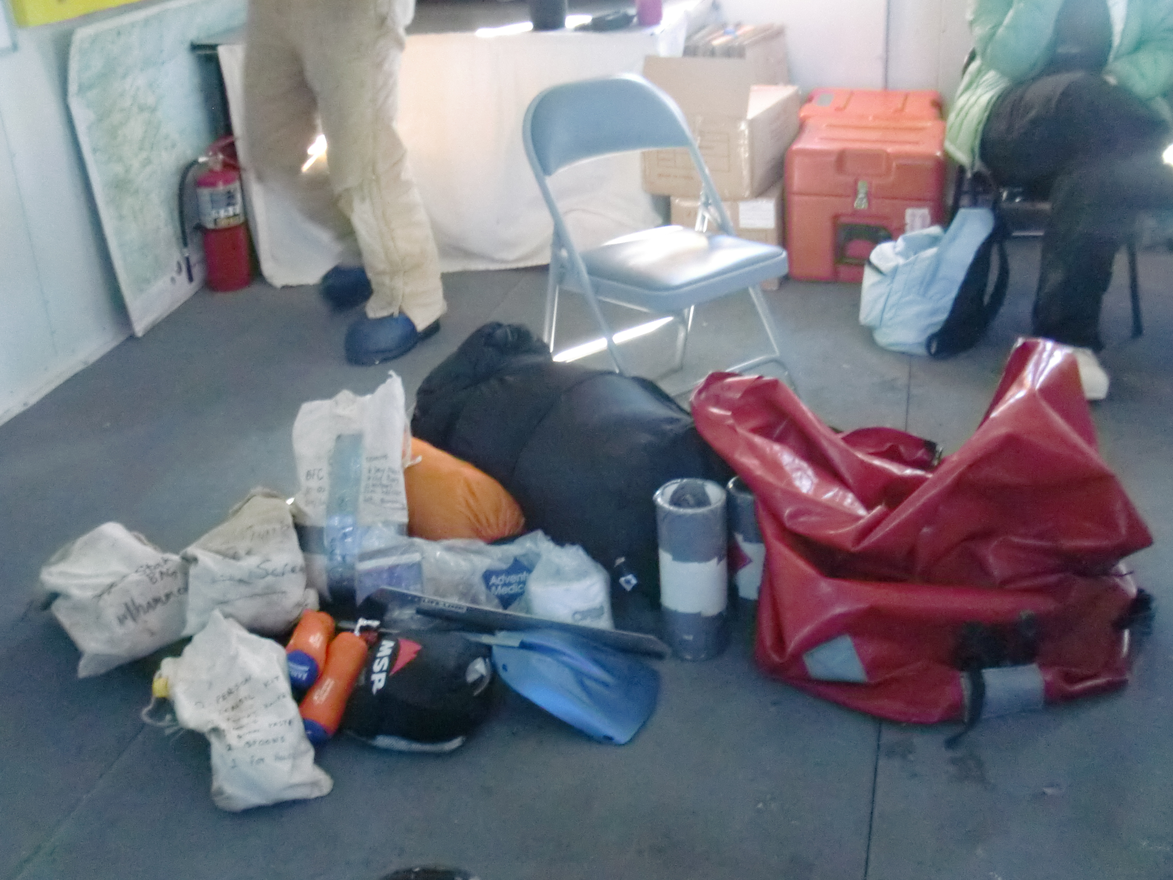 The essentials for survival unpacked from the survival training bag. At the Happy Camper Schoo, near McMurdo Station, Antarctica.
