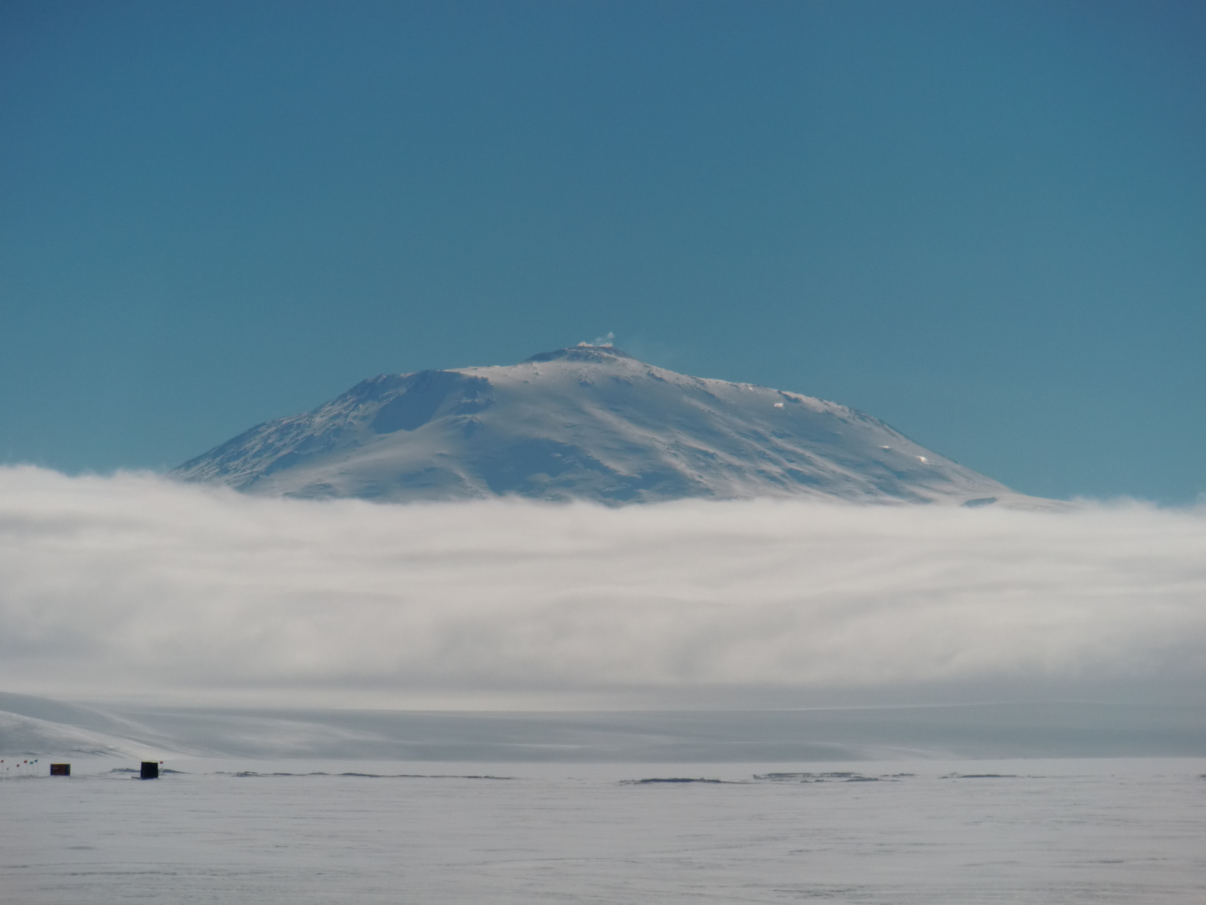 A view of Mount Erebus in the morning. At the Happy Camper Schoo, near McMurdo Station, Antarctica.