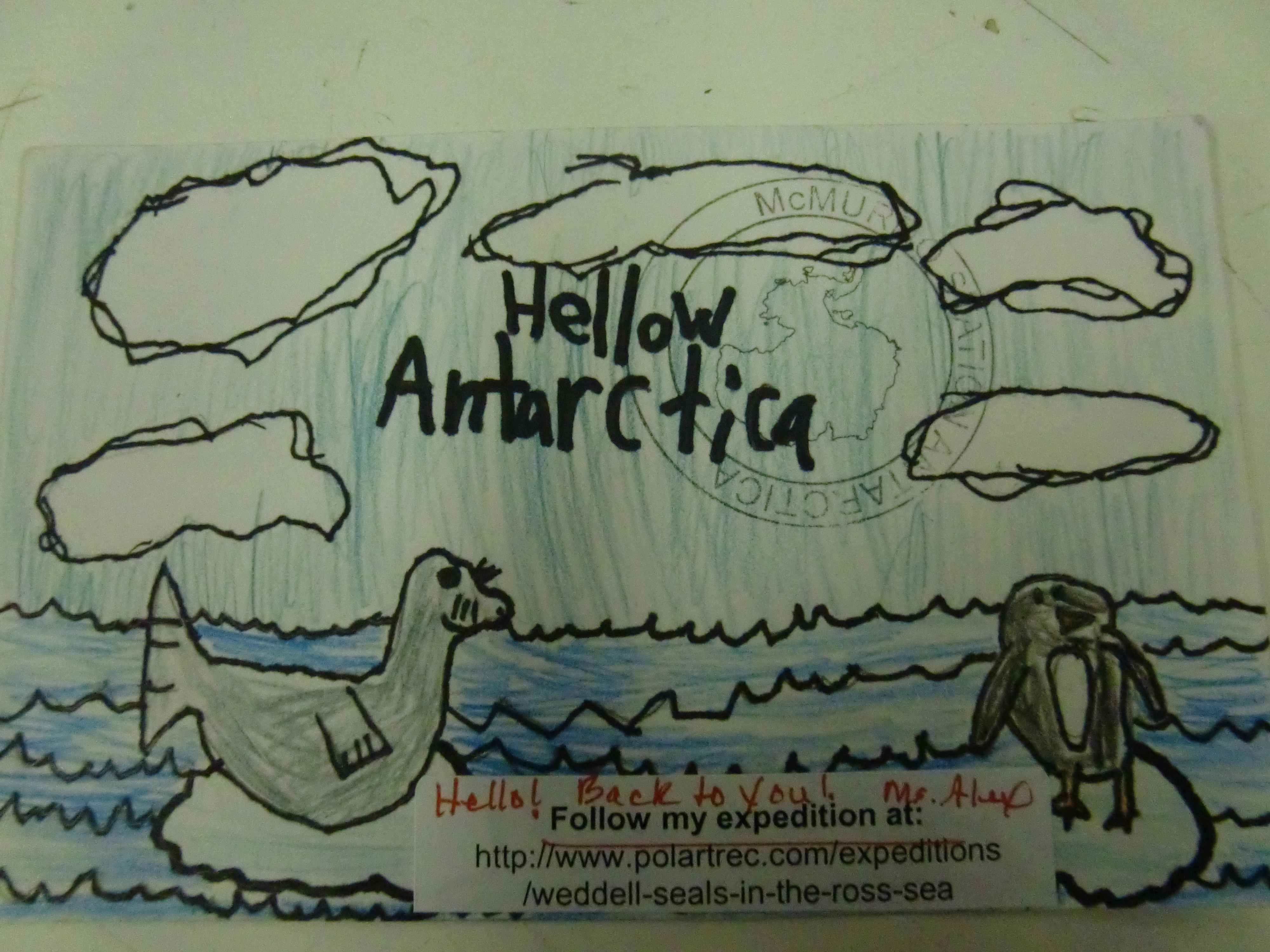 Alex Eilers: "Hello Antarctica drawing!" McMurdo Station, Antarctica.