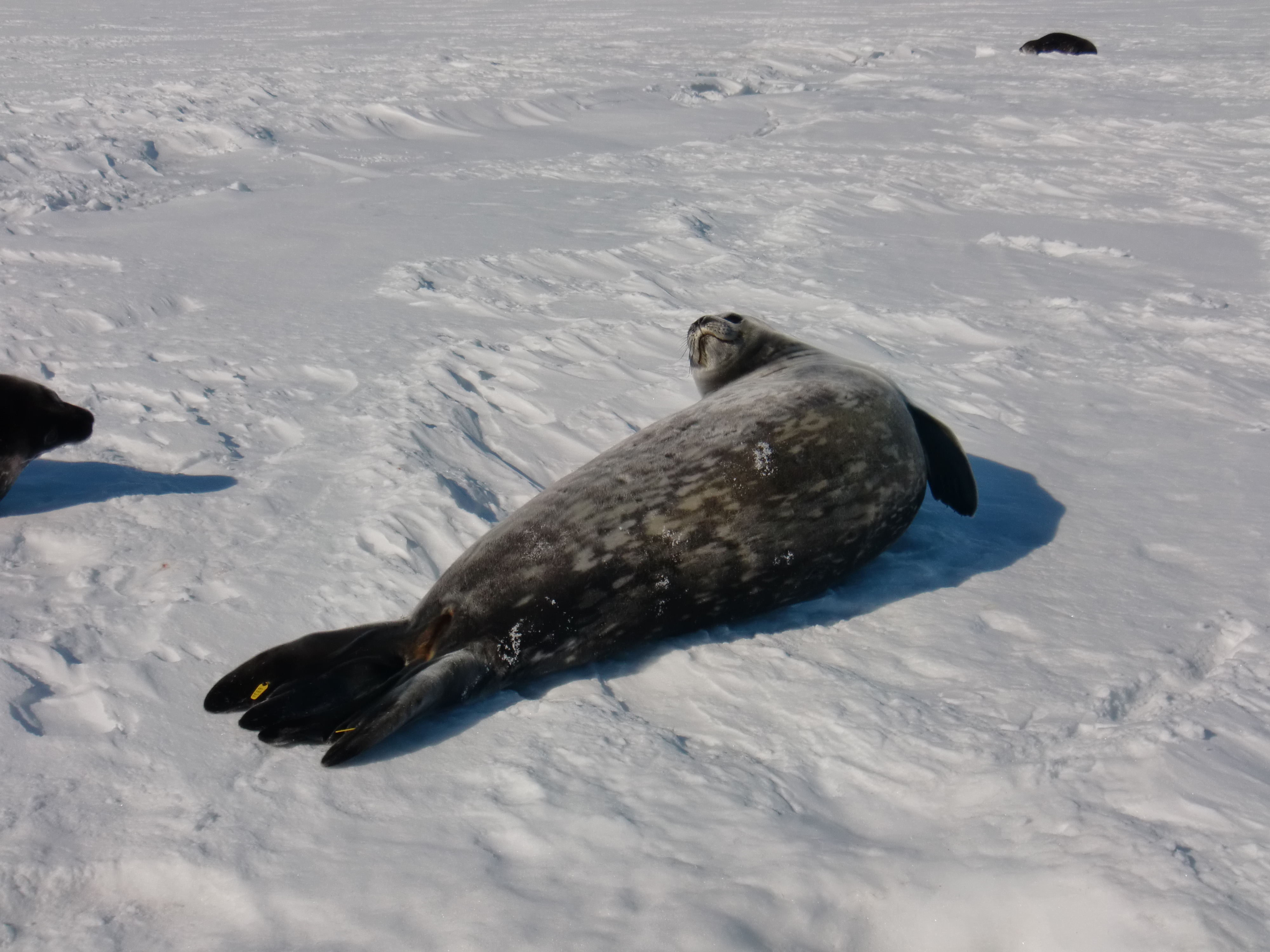 A Weddell seal soaks up the sun. Turtle Rock, Antarctica.