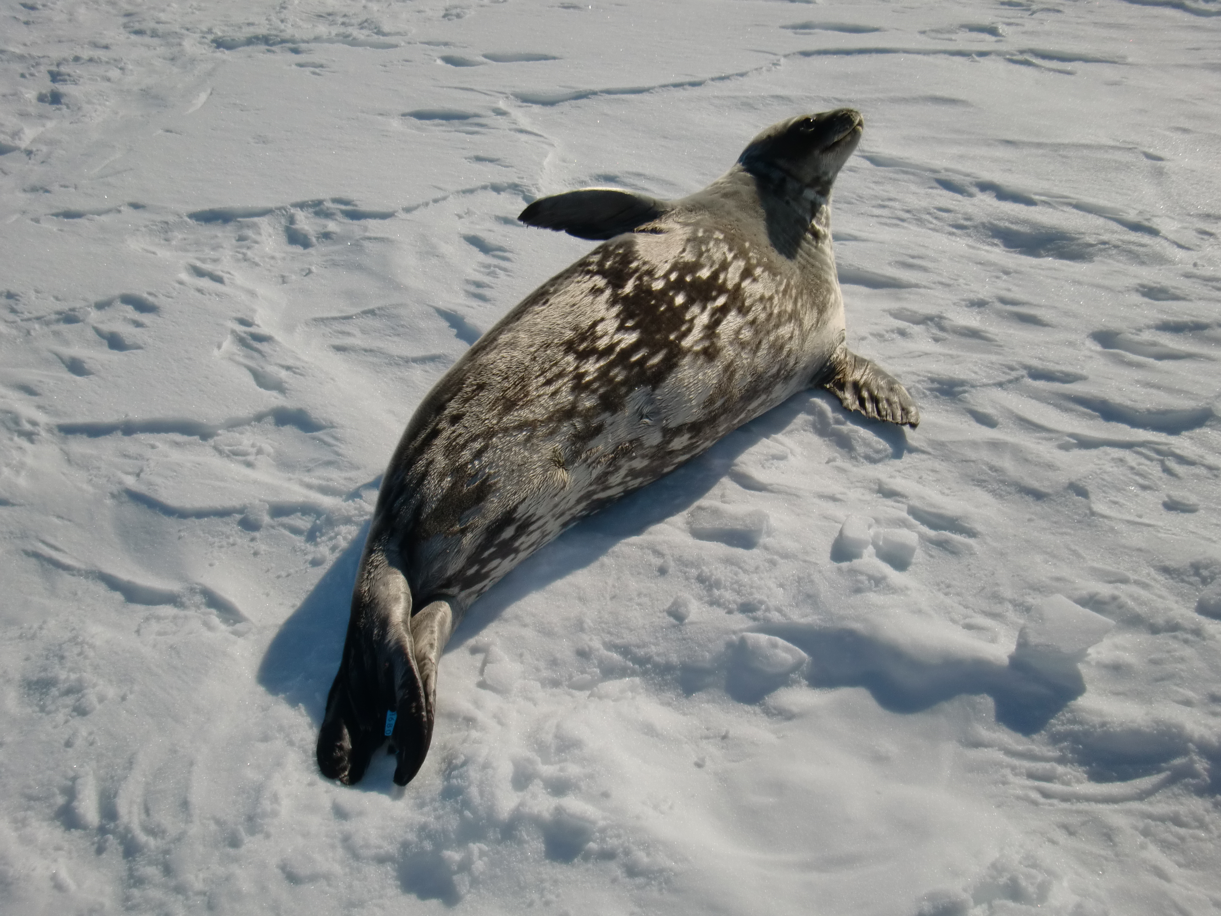 A Weddell seal soaks up the sun. Turtle Rock, Antarctica.