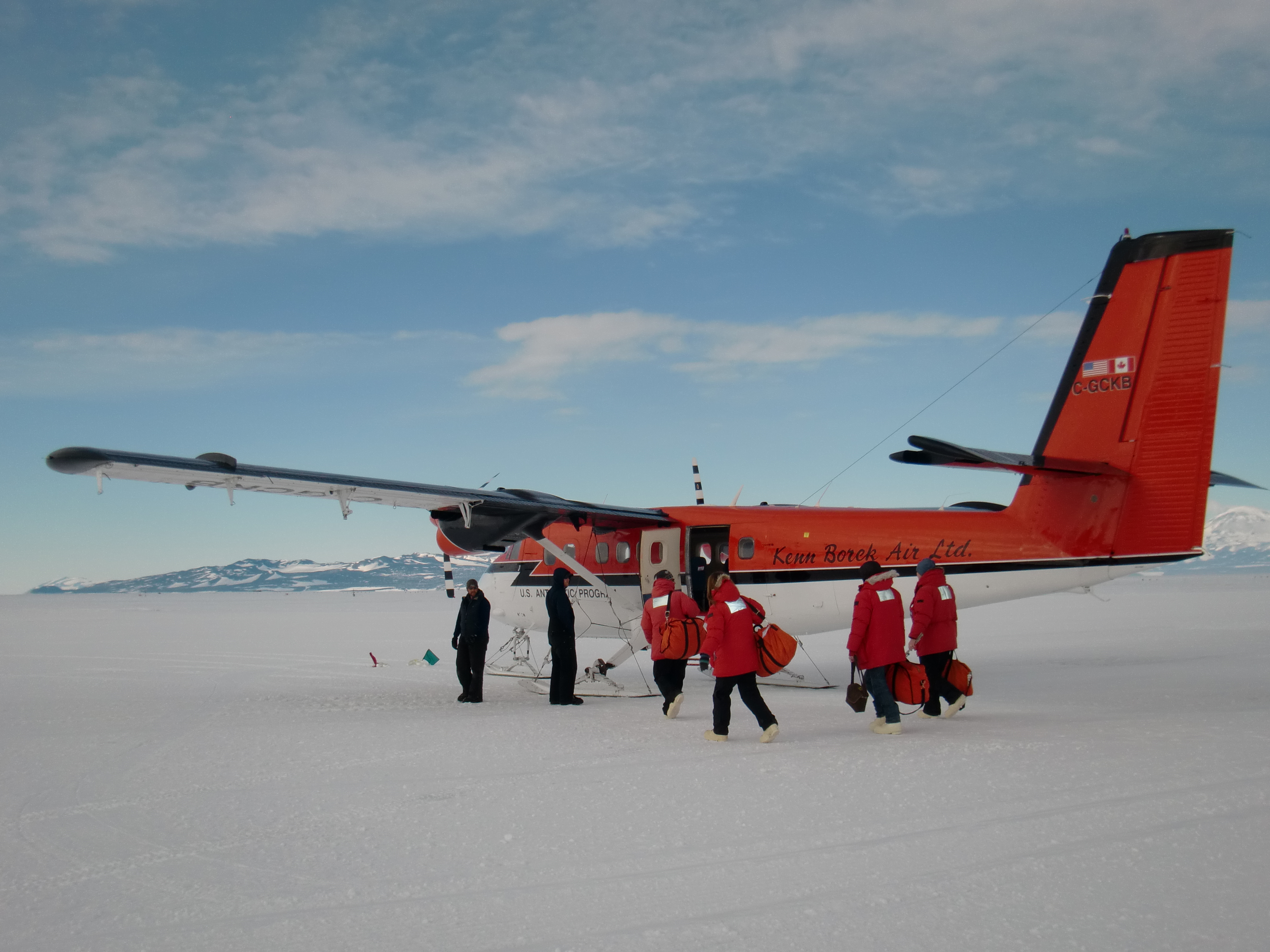 The Weddell seal team gets on the Twin Otter airplane. Near McMurdo Station, Antarctica.