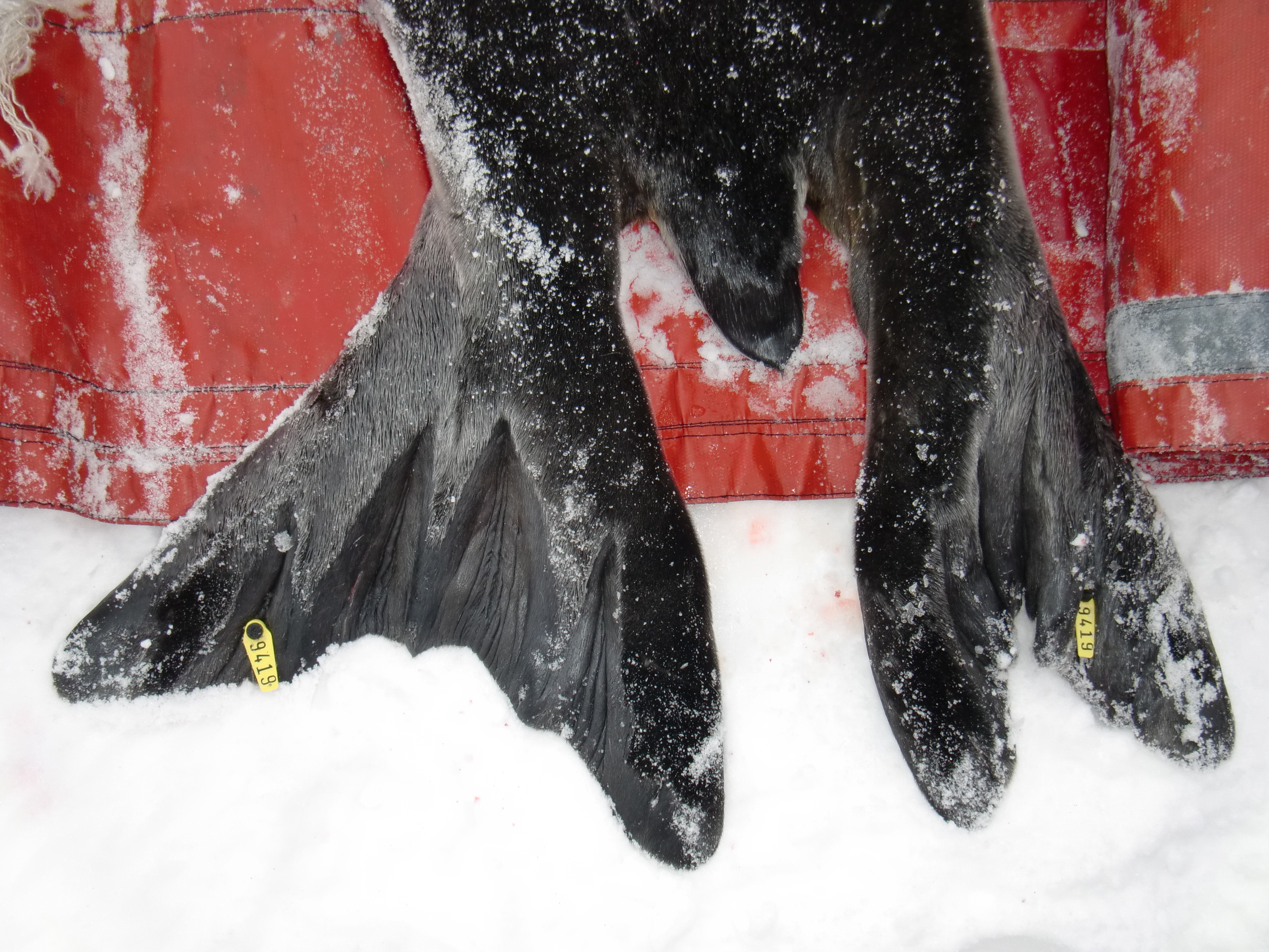 This seal has been flipper tagged with ID number 9419. Near Scott Base, Antarctica.