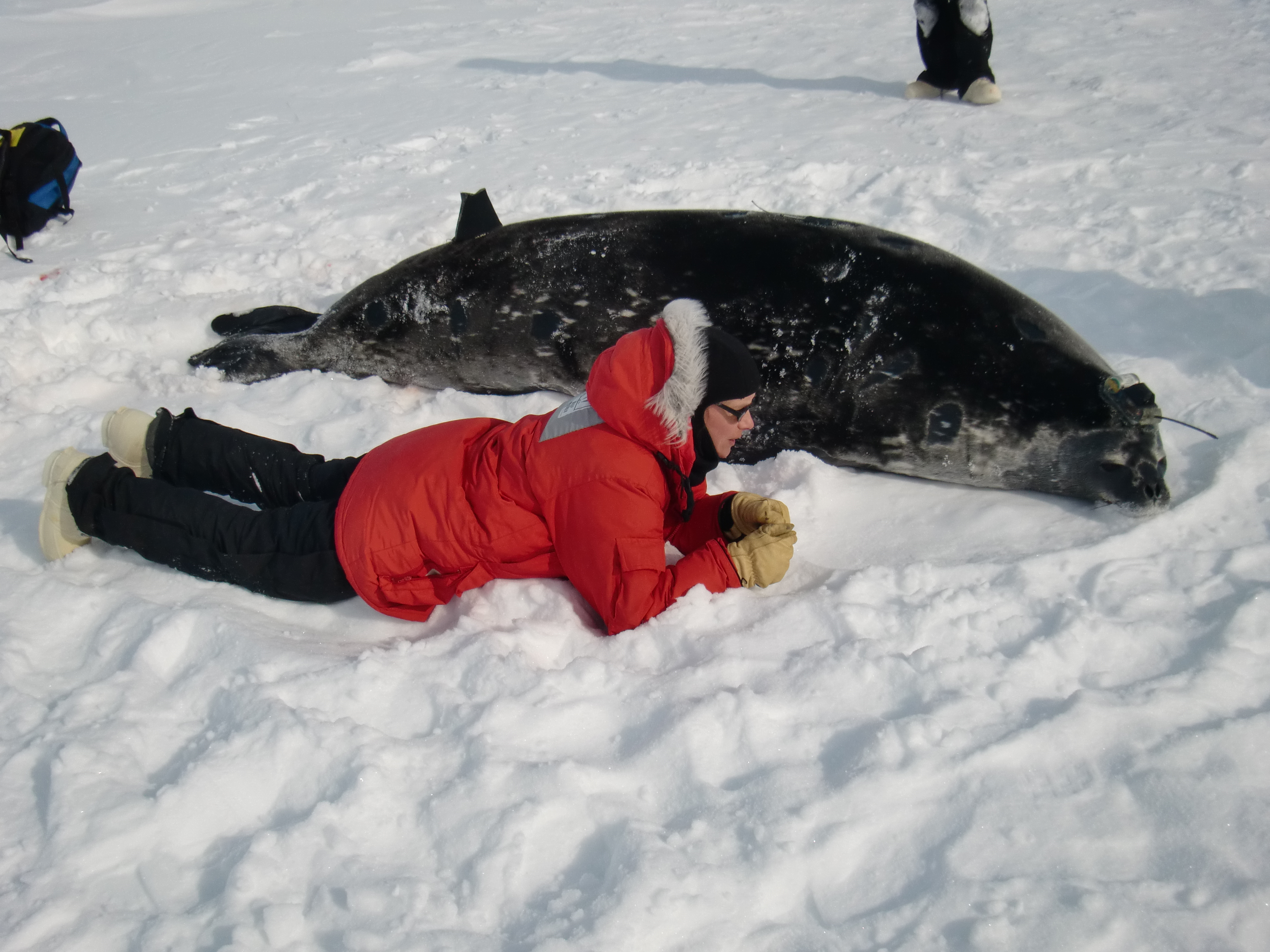Alex Eilers: "Here I am showing off my insulation, I have two other layers under my Big Red and I'm still cold." Near Scott Base, Antarctica.