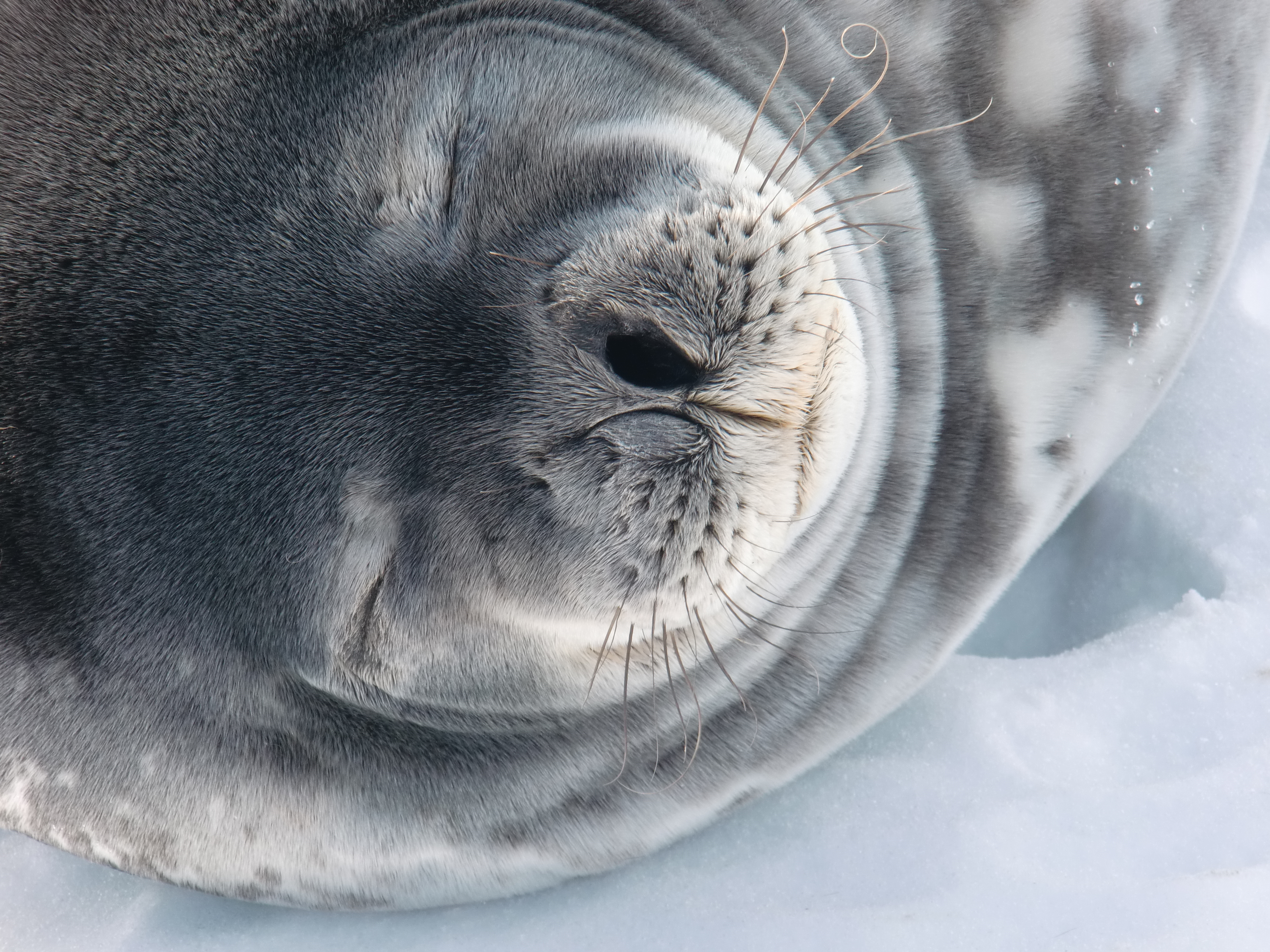 A close-up of a Weddell seal's whiskers. Near Scott Base, Antarctica.
