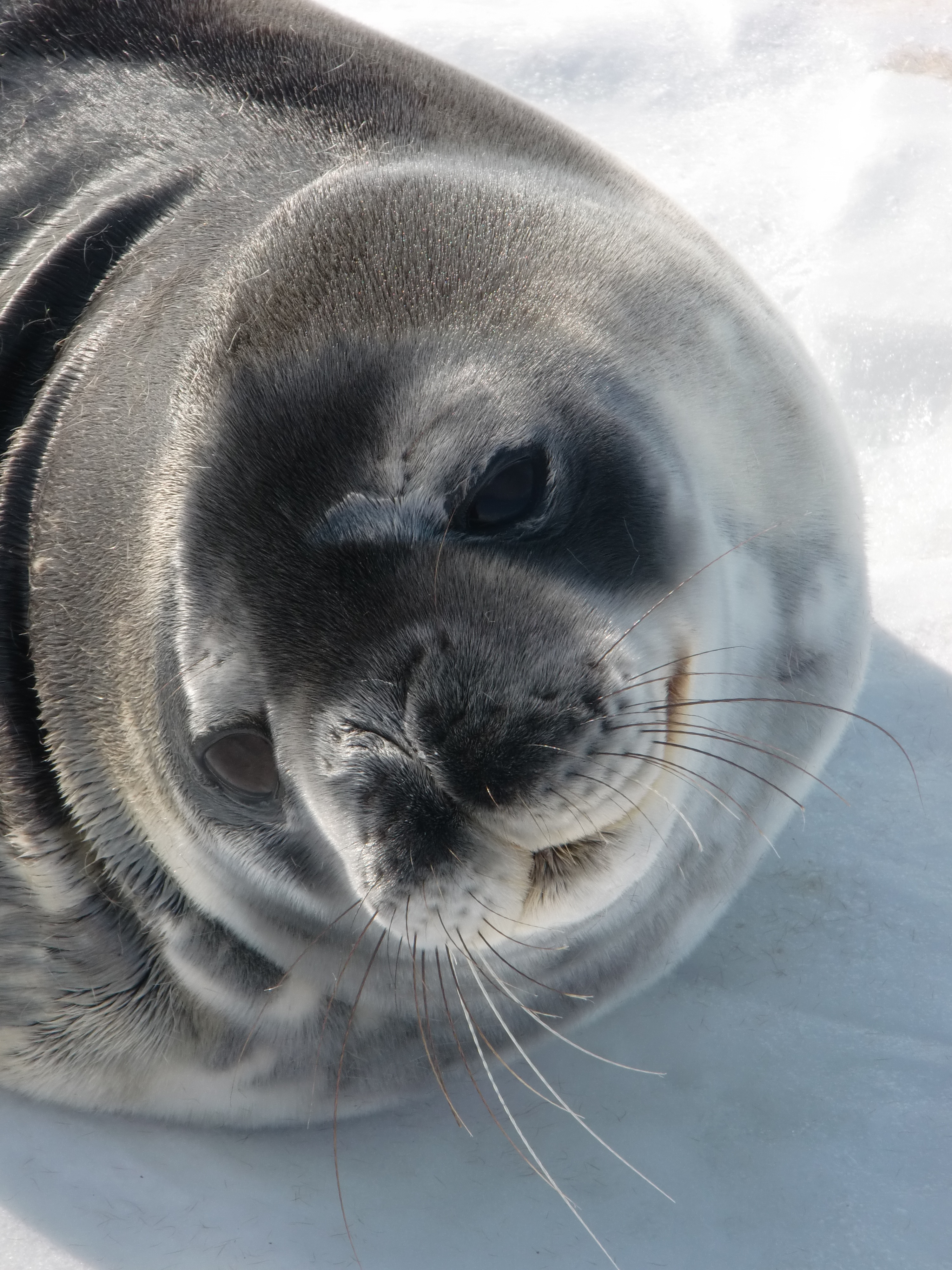 A Weddell seal poses for the camera. Near McMurdo Station, Antarctica.