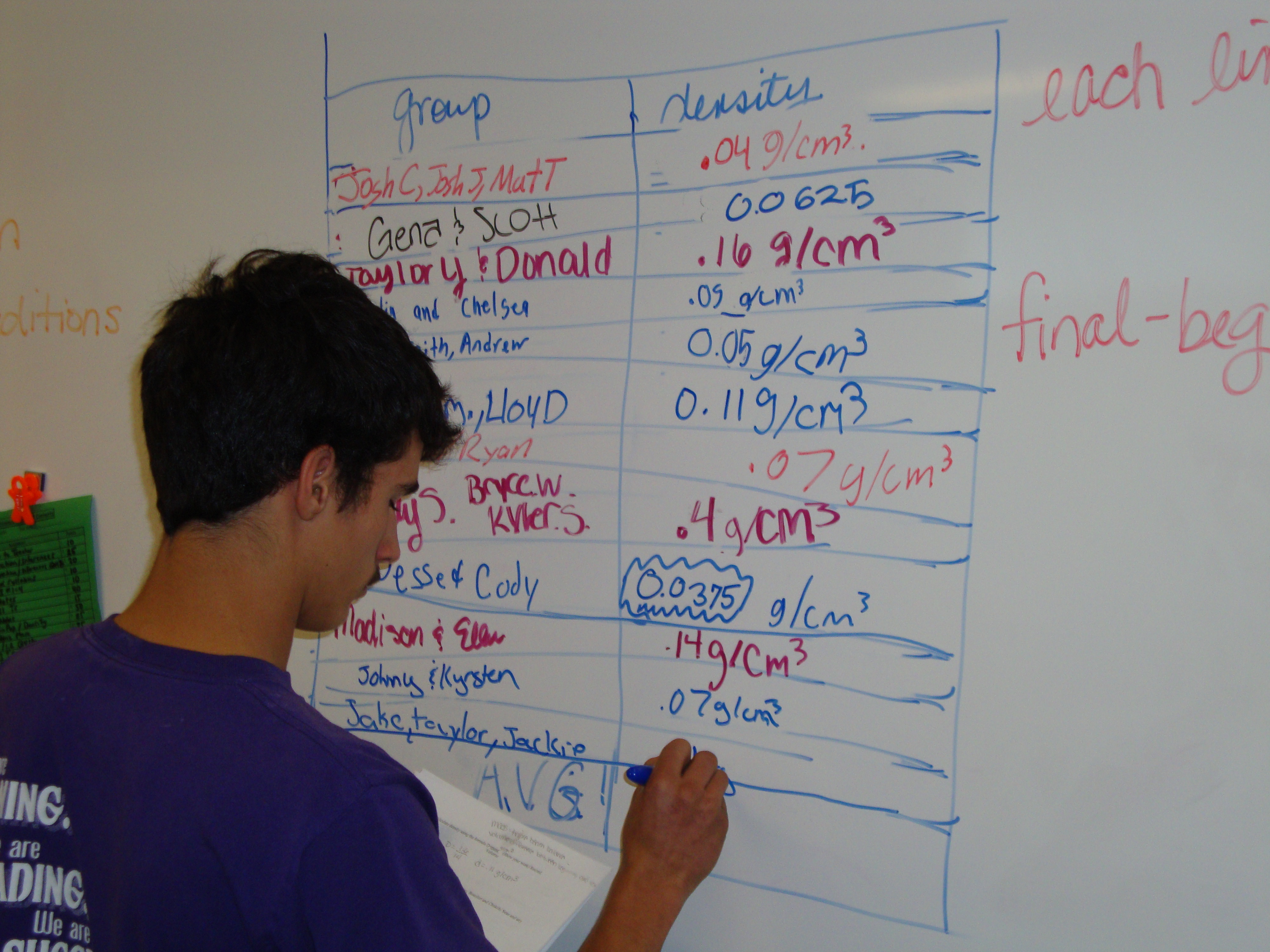 Jake adding his data to the class data table. Graham High School, St. Paris, Ohio.