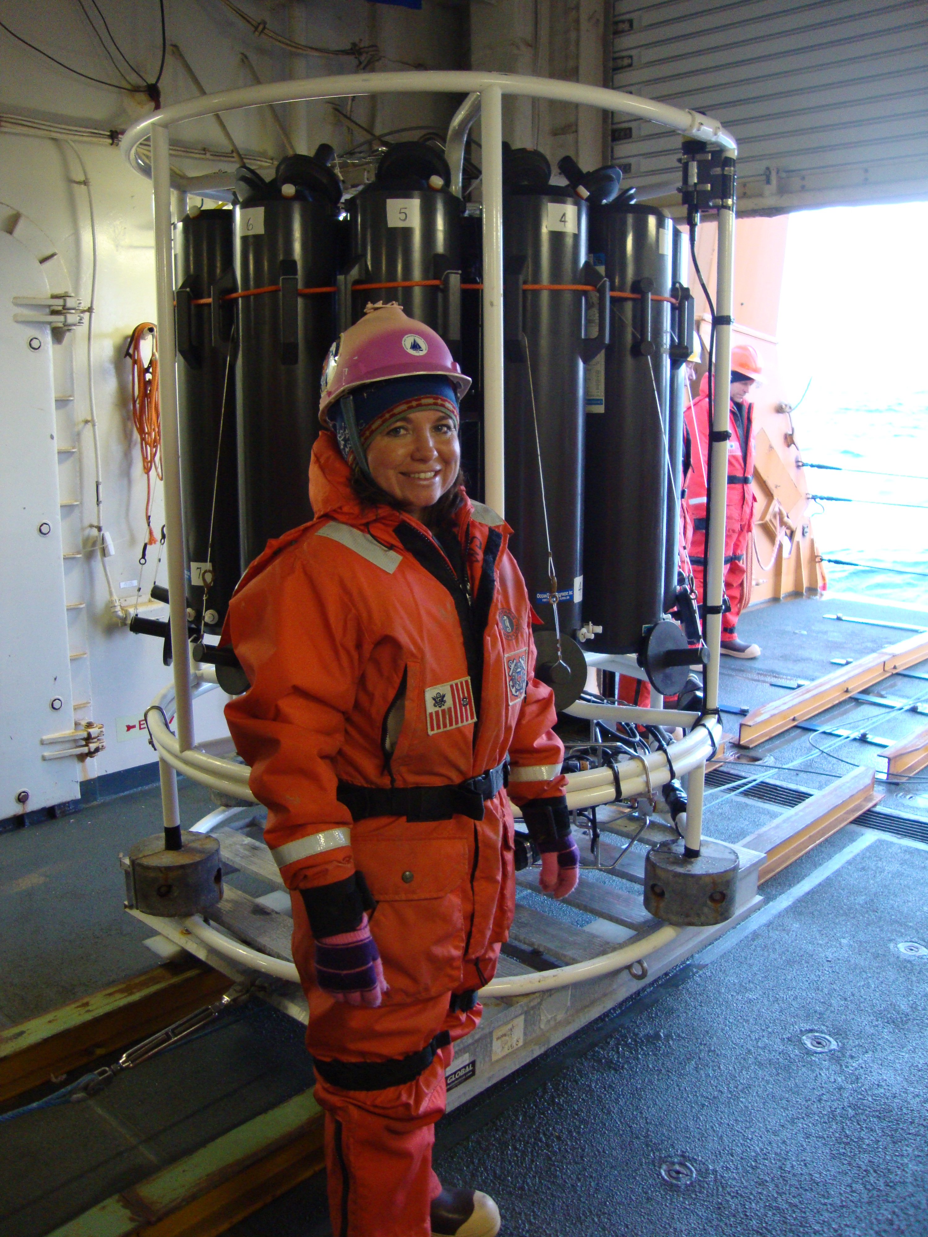 Chantelle Rose with the CTD (Conductivity, Temperature, and Depth instrument). Aboard the USCGC Healy icebreaker Lab.