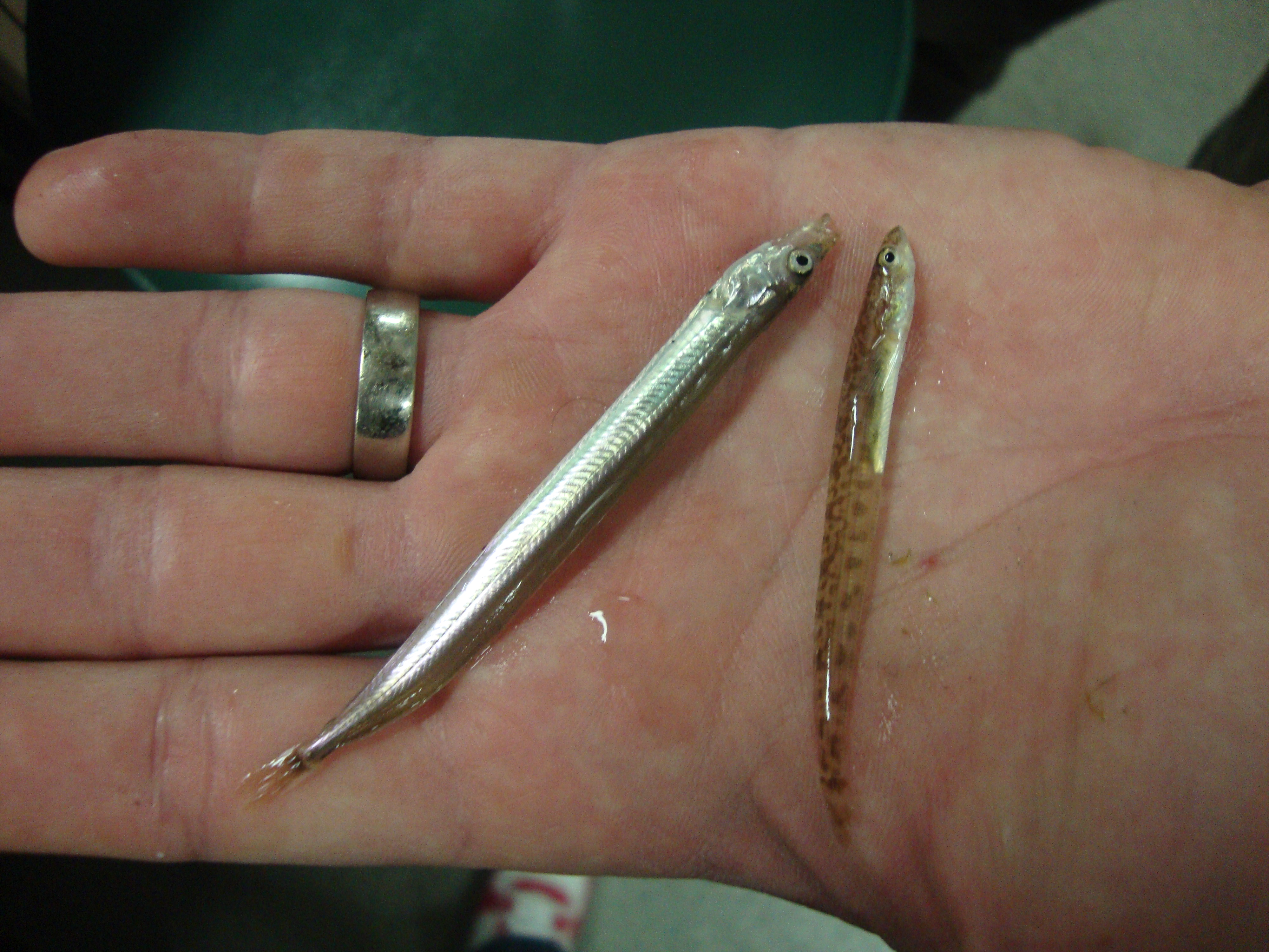 Prickleback and sand lance fish specimens. Aboard the USCGC Healy icebreaker in the main lab.
