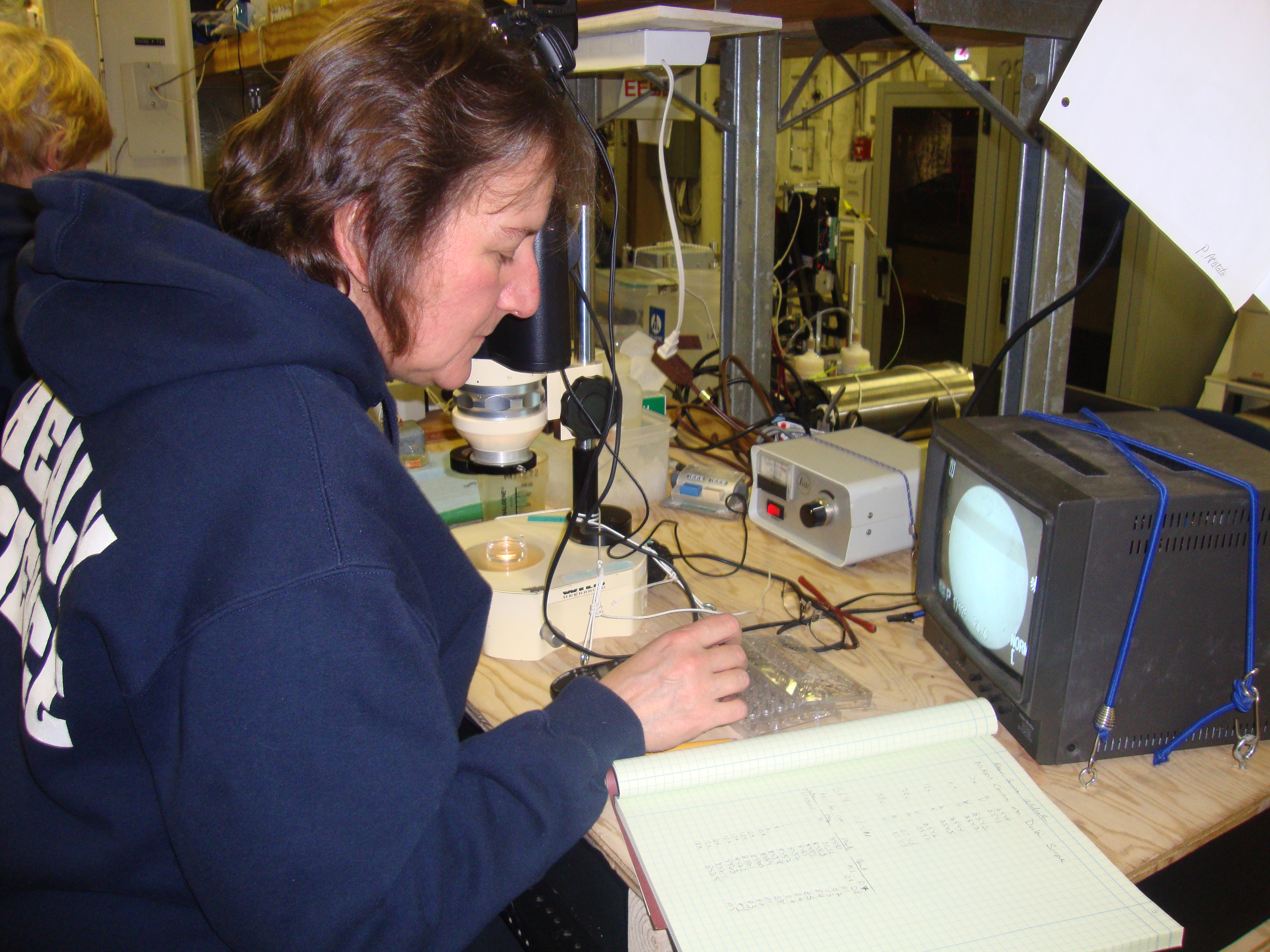 Carin photographs specimens. Aboard the USCGC Healy icebreaker in the main lab.