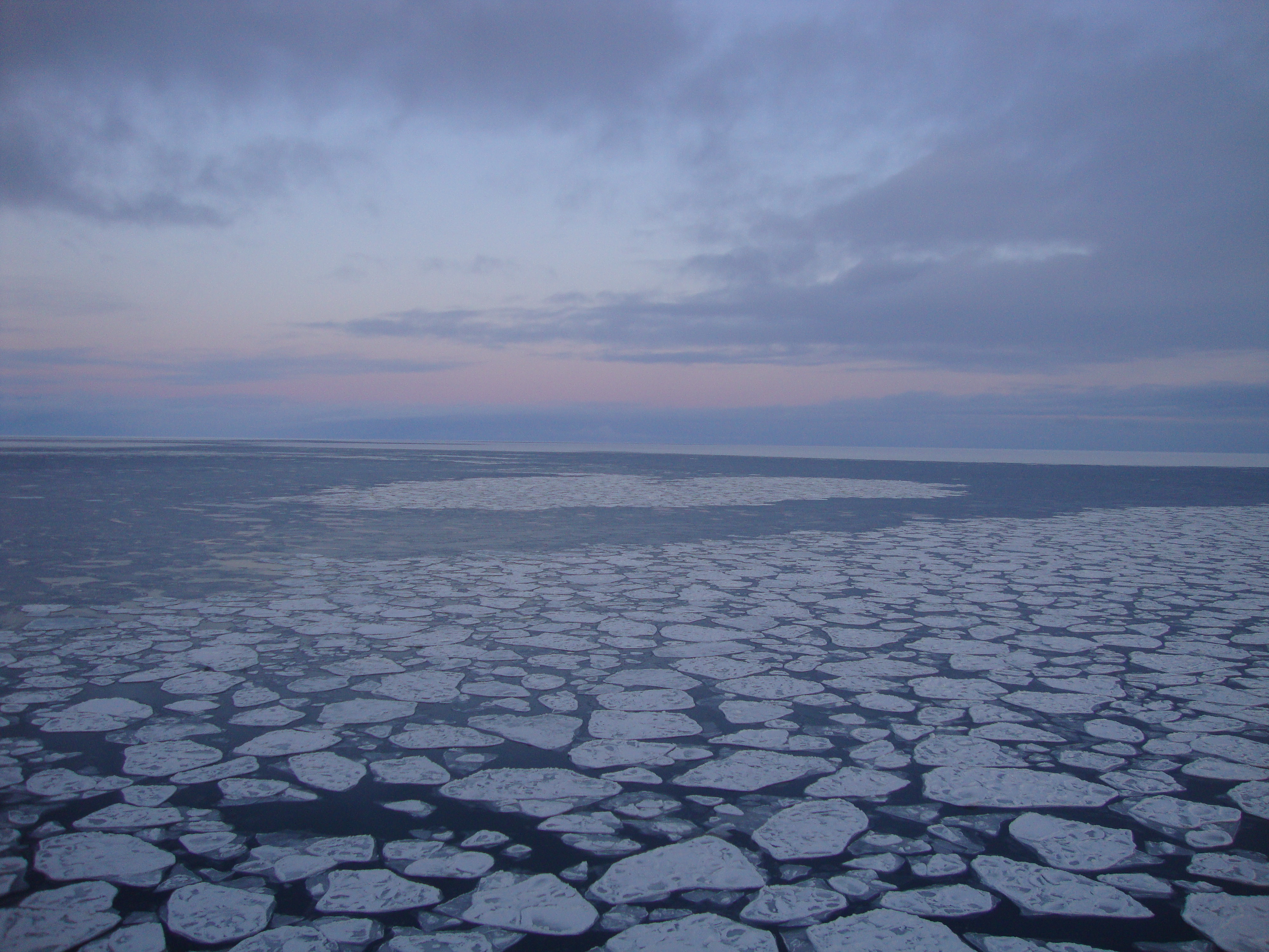 Patches of sea ice pancakes with open water. Aboard the USCGC Healy icebreaker.