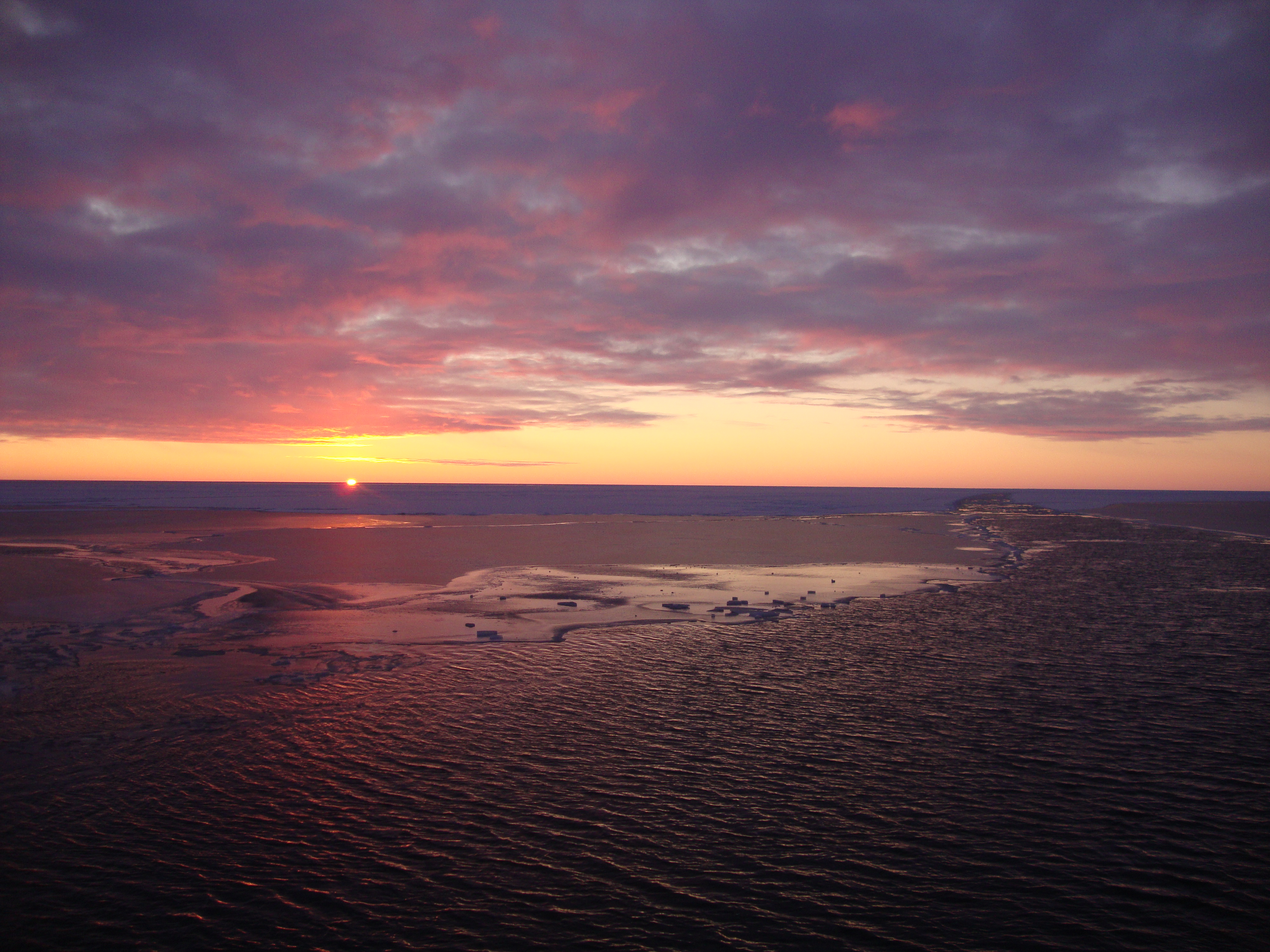 A bit of the sun on the day that no longer has a full sunrise. Aboard the USCGC Healy icebreaker on the weather deck.