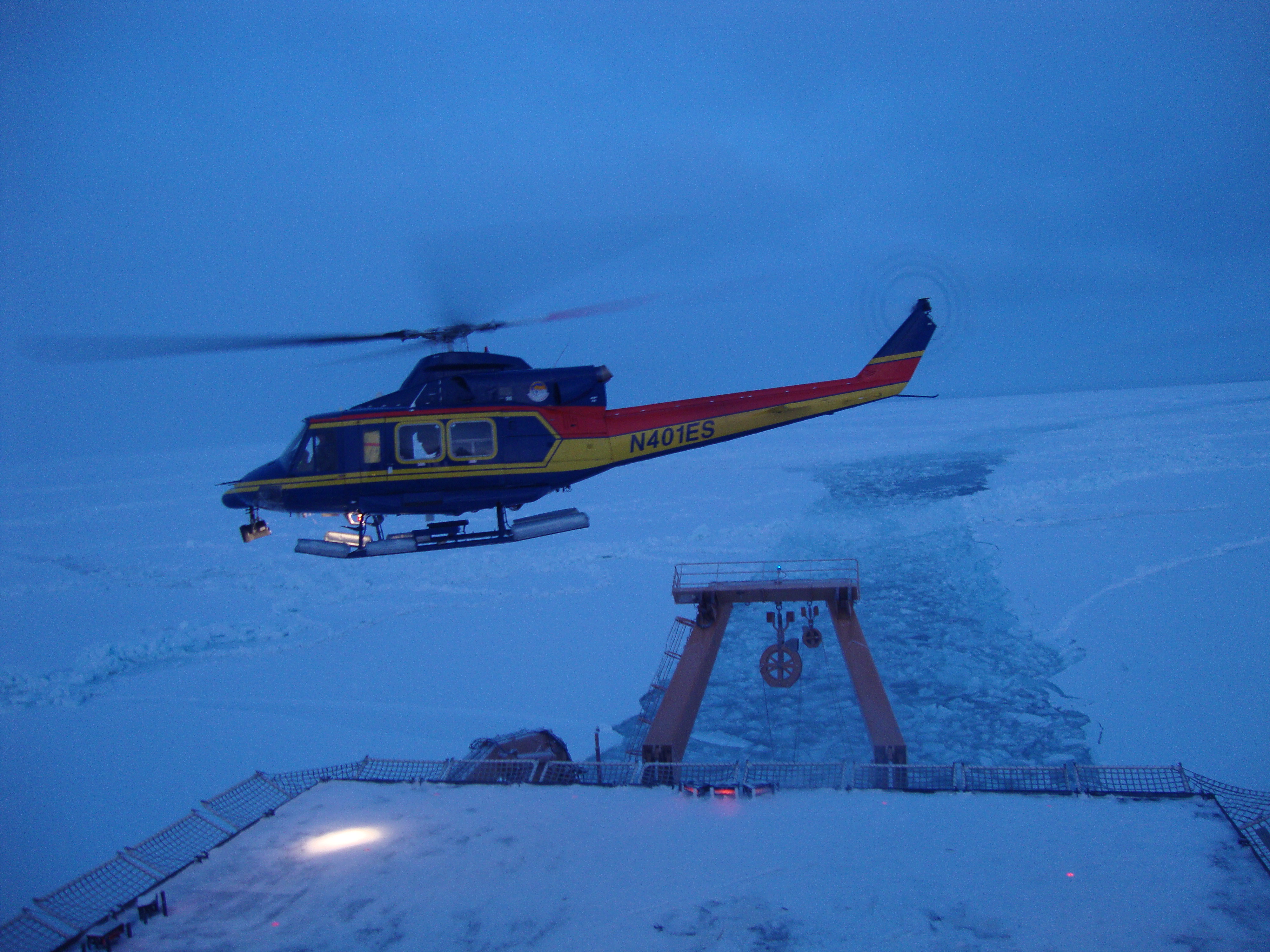 Helicopter landing. Aboard the USCGC Healy icebreaker on the weather deck.