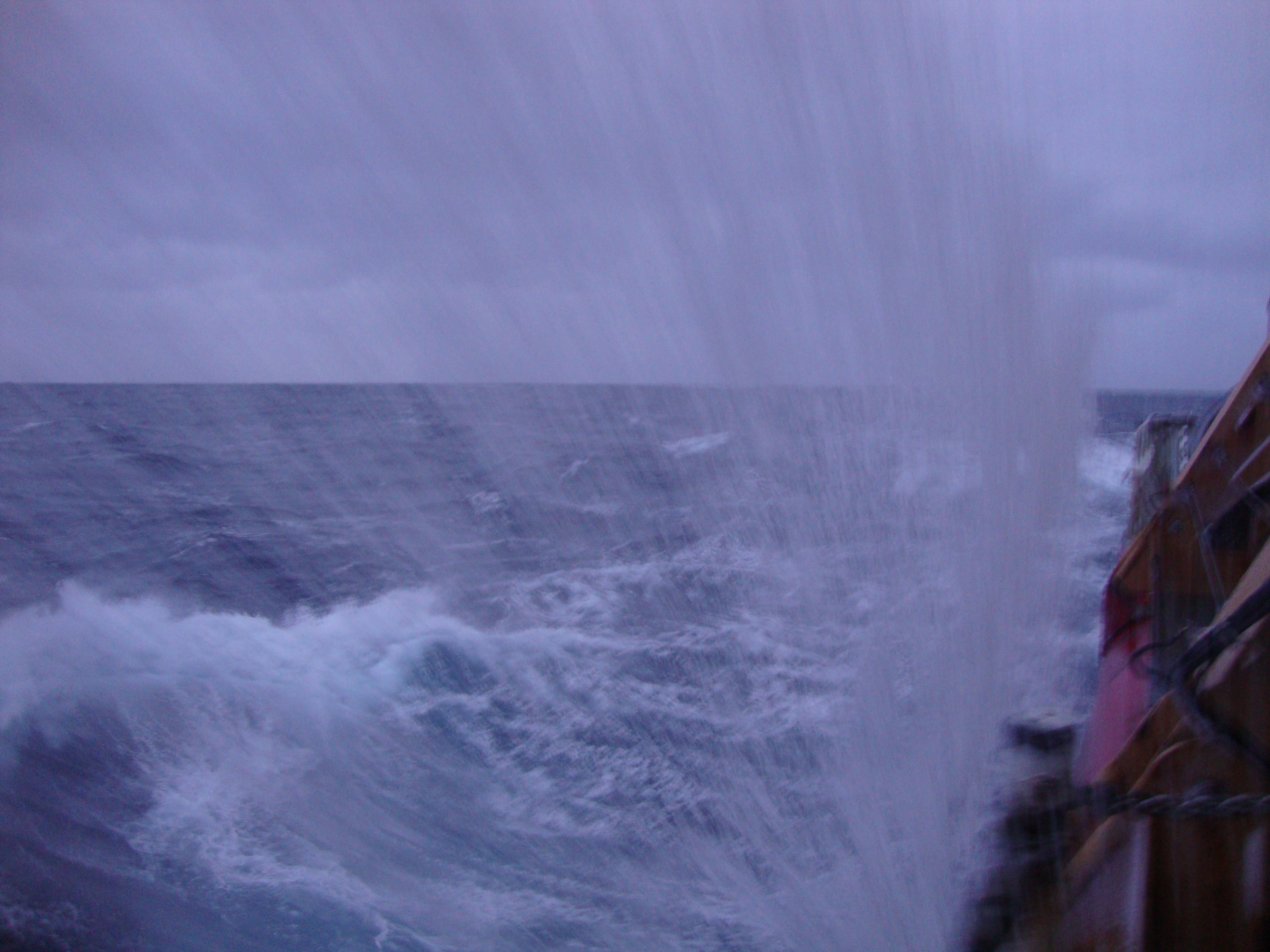 A large wave from the Bering Sea splashes against the Healy. Aboard the USCGC Healy icebreaker on the weather deck.