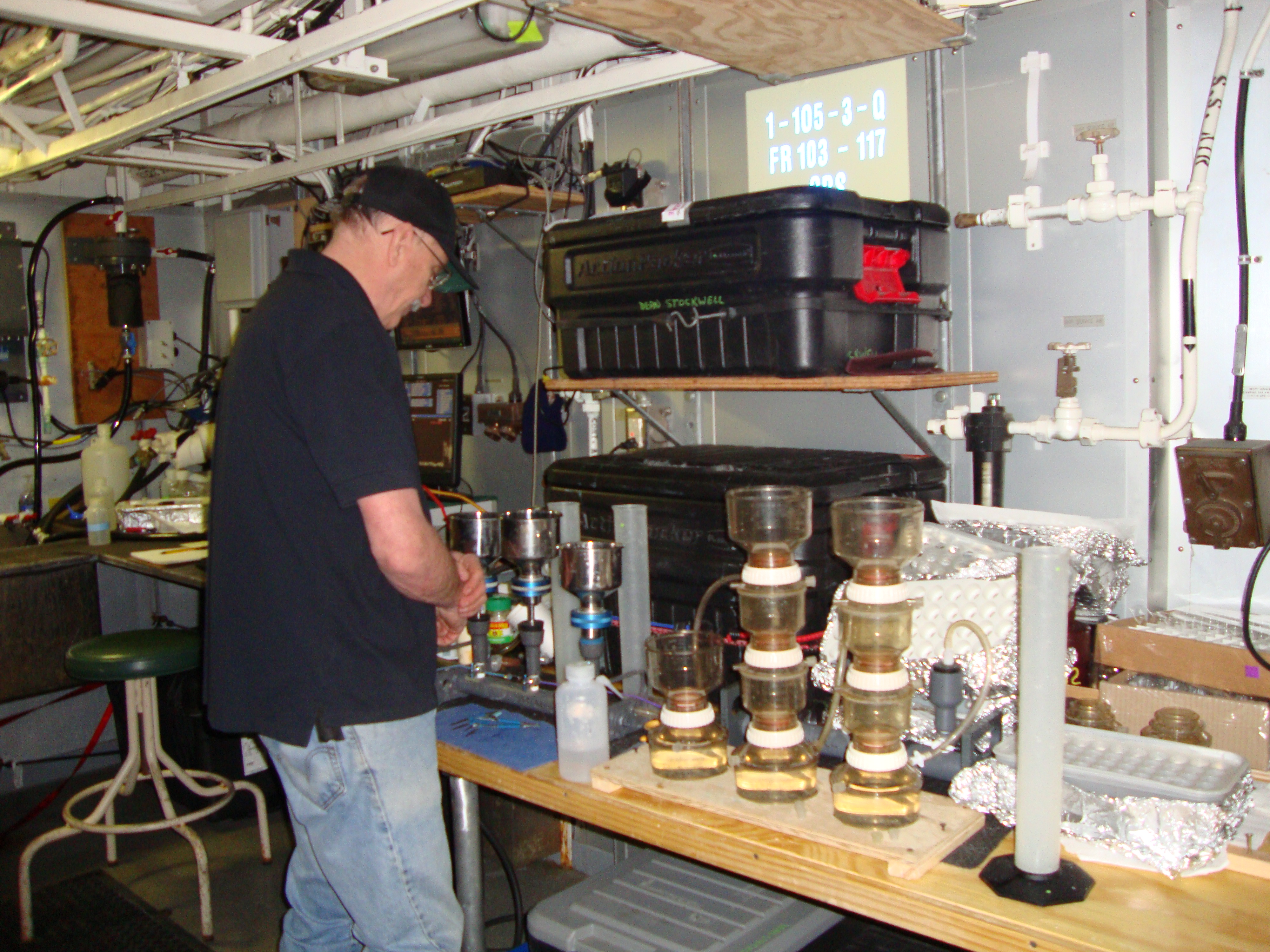 Dean with phytoplankton equipment. Aboard the USCGC Healy icebreaker in the biochem lab.