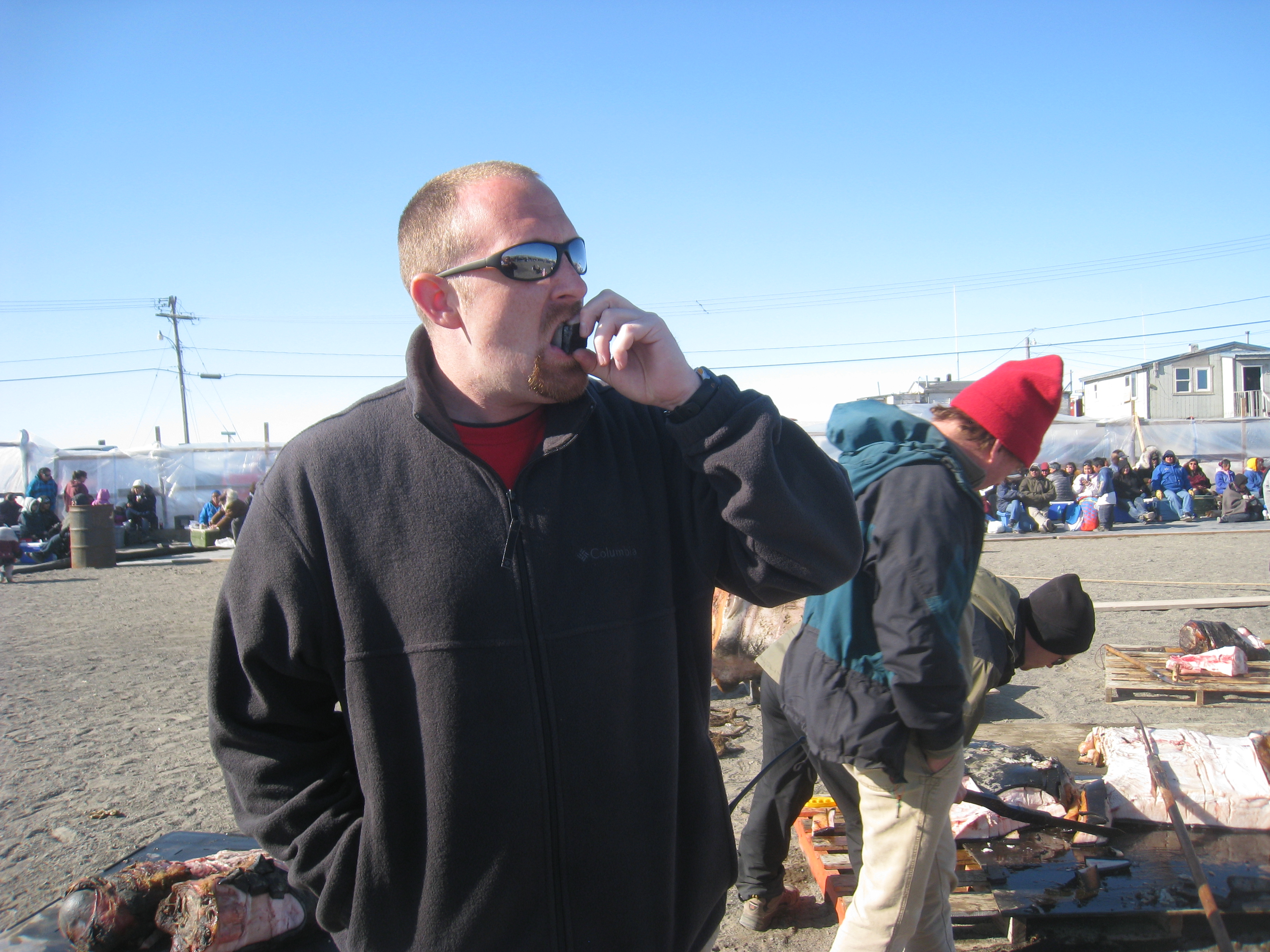 Jim Miller's first attempt at trying whale blubber. Barrow, Alaska.