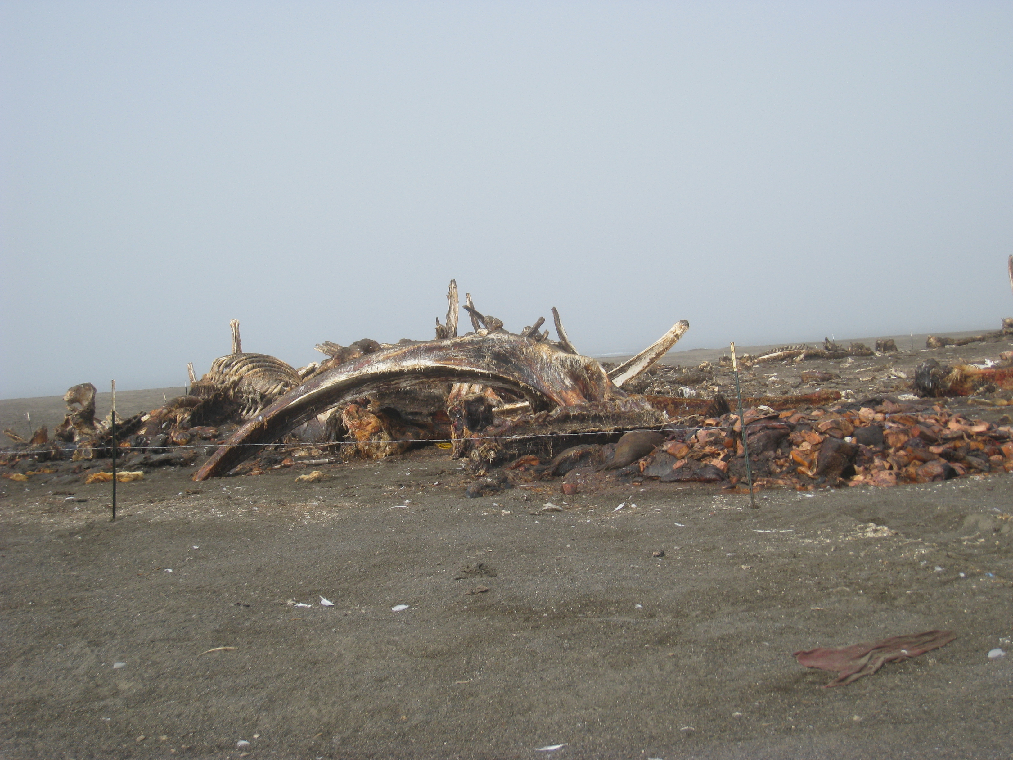 Jim Miller: "The arched bone is part of a whale's skull. Notice the muktuk (blubber) to the right of the bones, this would be a delicacy for the bears." Barrow, Alaska.