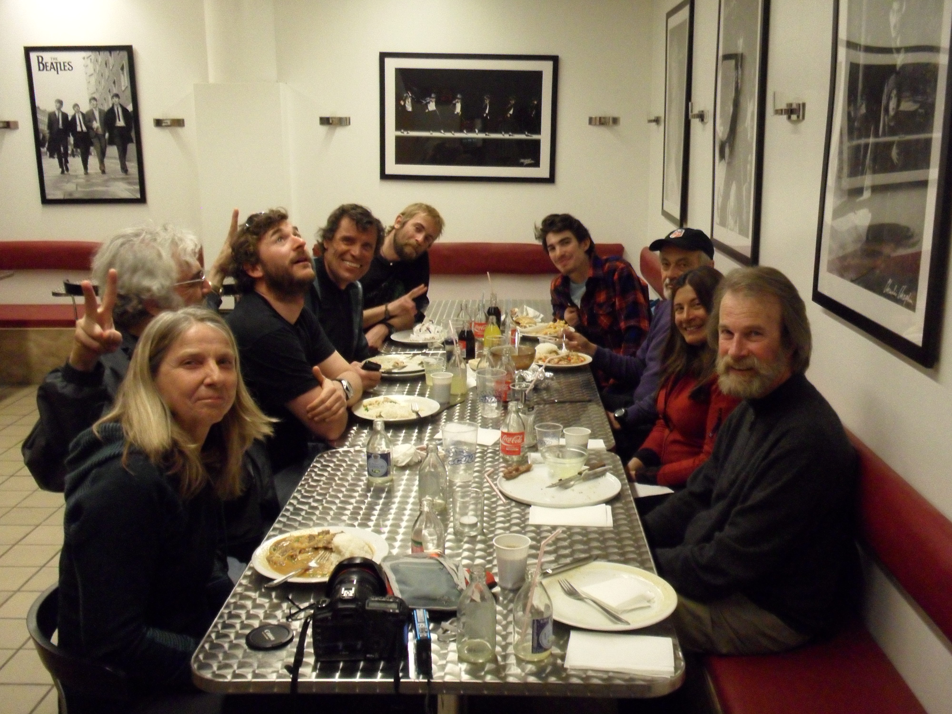 Dr. Konrad Steffen's team eating dinner at the Polar Bear. Kangerlussuaq, Greenland.