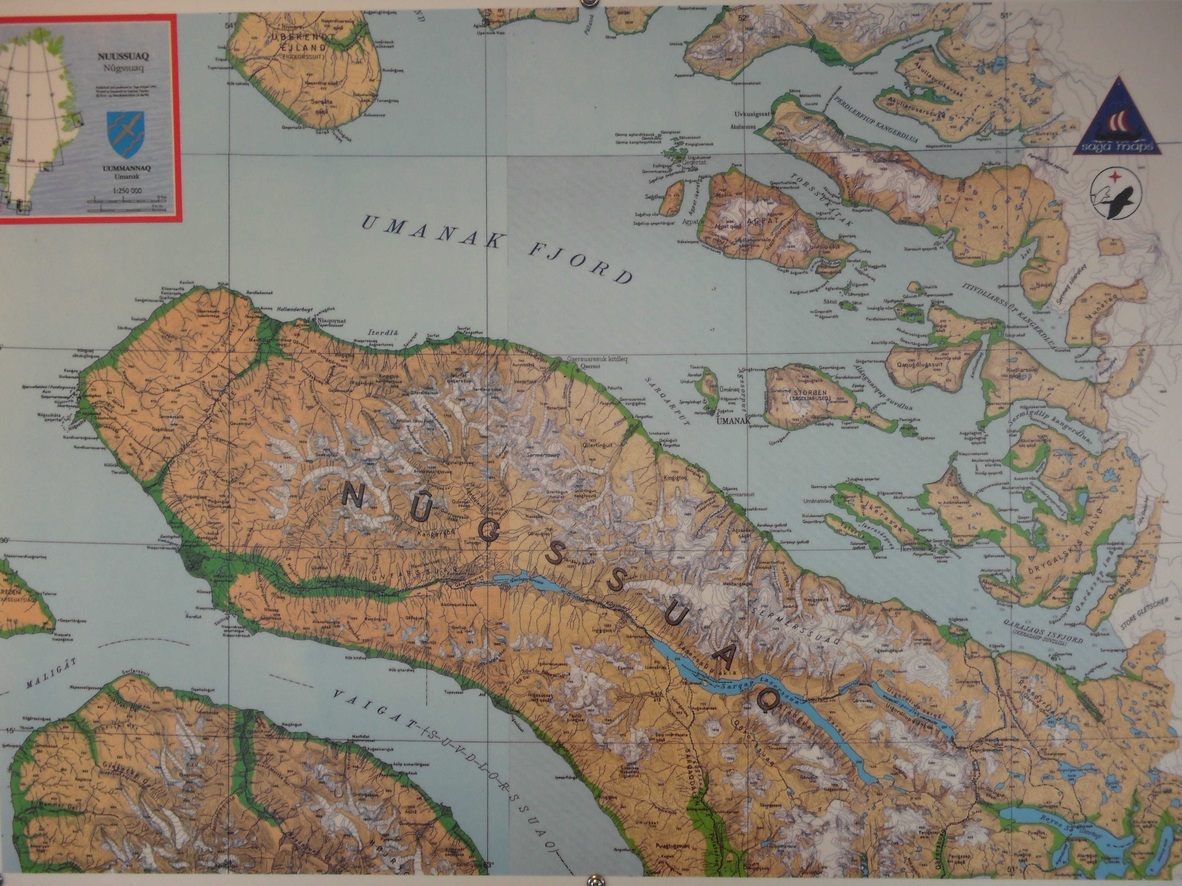 Map of the Uummannaq area. Uummannaq, Greenland.