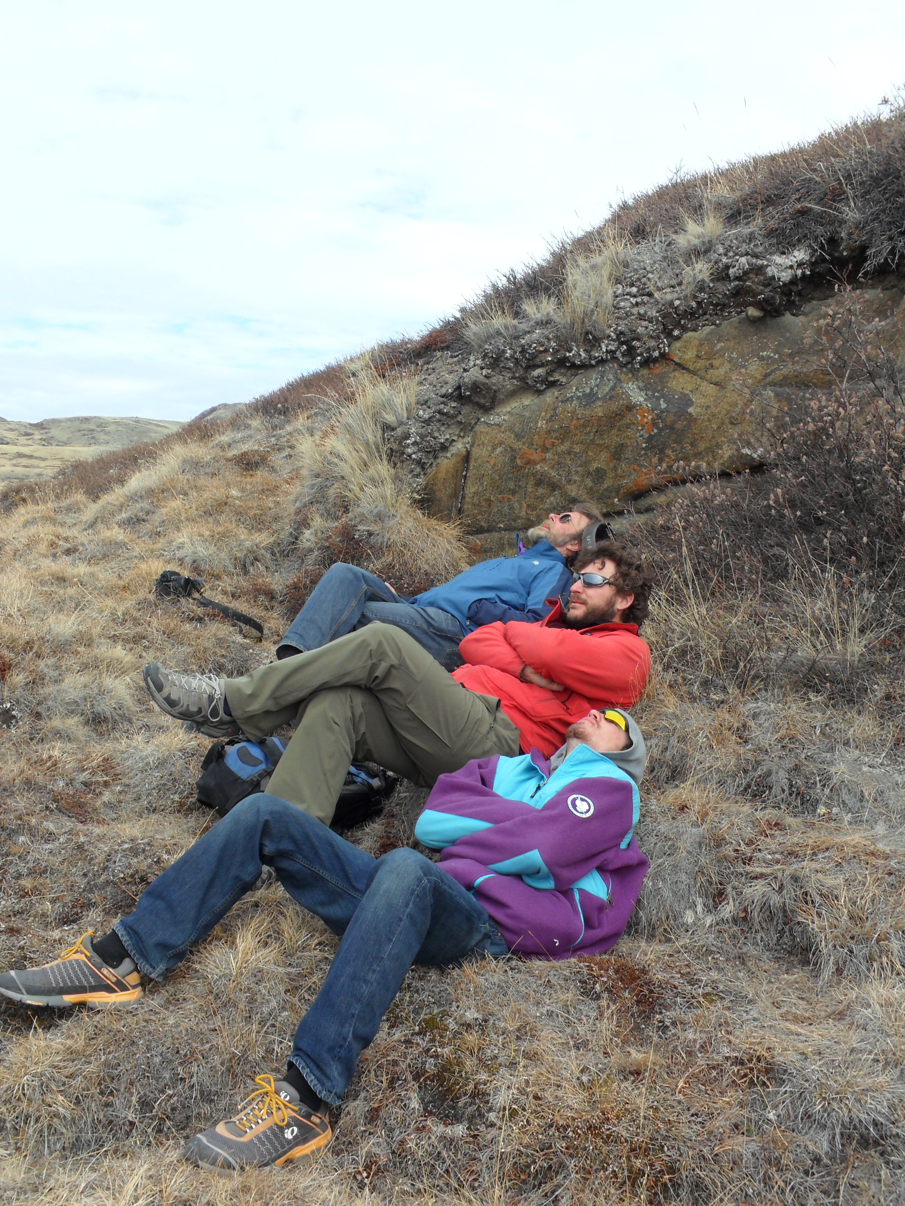 The team takes a lunch break at Russell Glacier. Near Kangerlussuaq, Greenland.