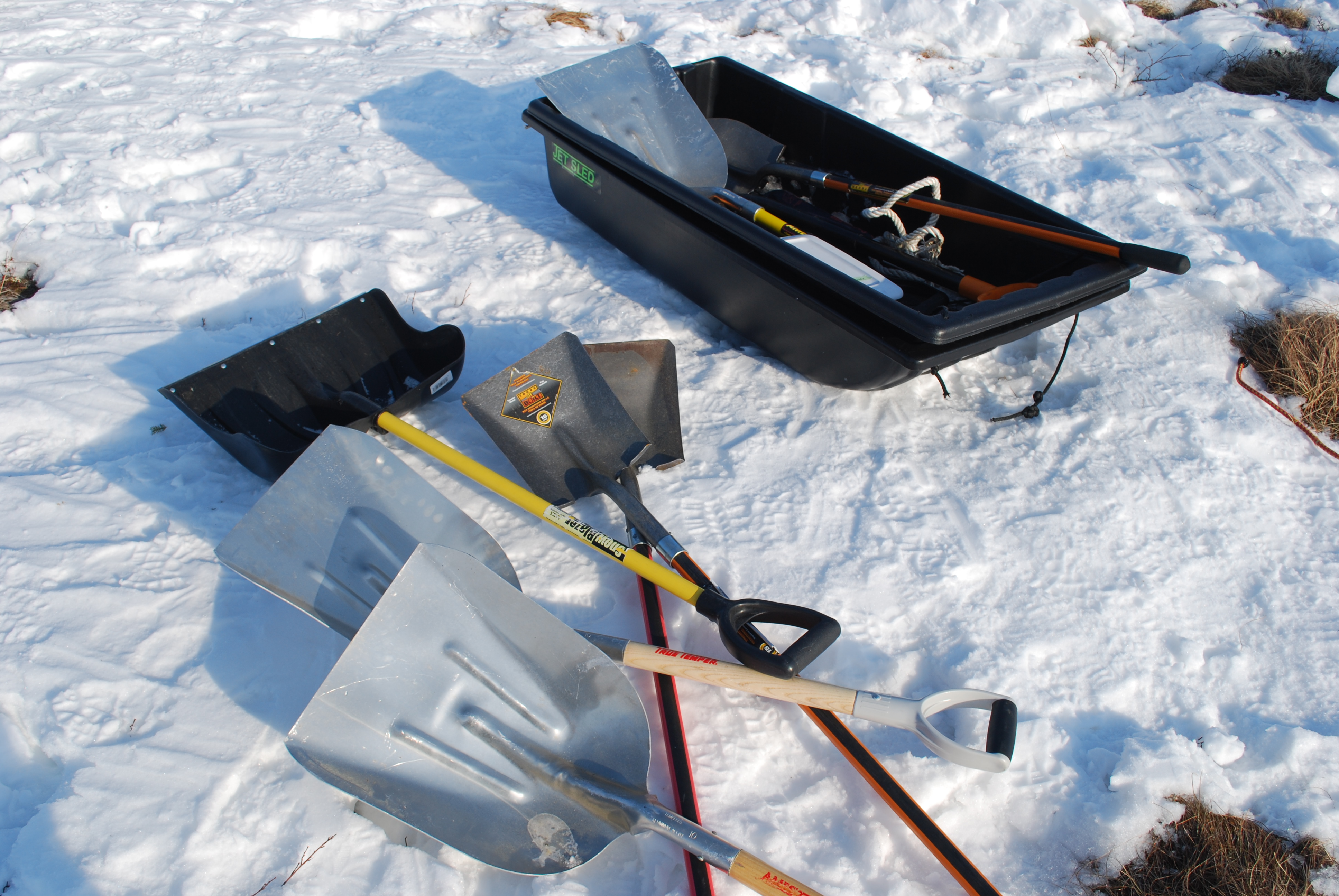 Tools to shovel and move snow. Healy, Alaska.