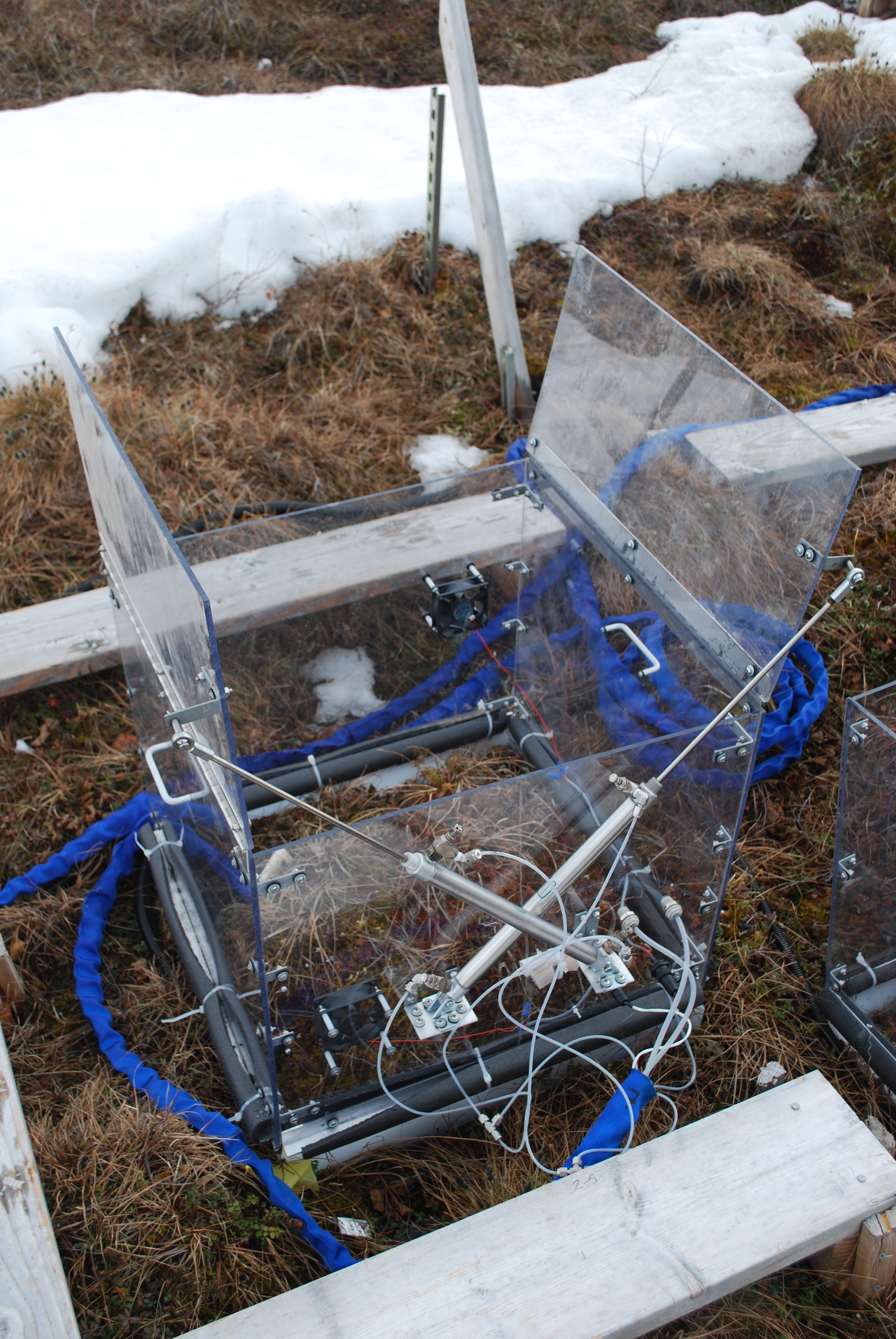 The arms on this Summer Warming Chamber automatically open and close the top when a sample is being taken. Healy, Alaska.