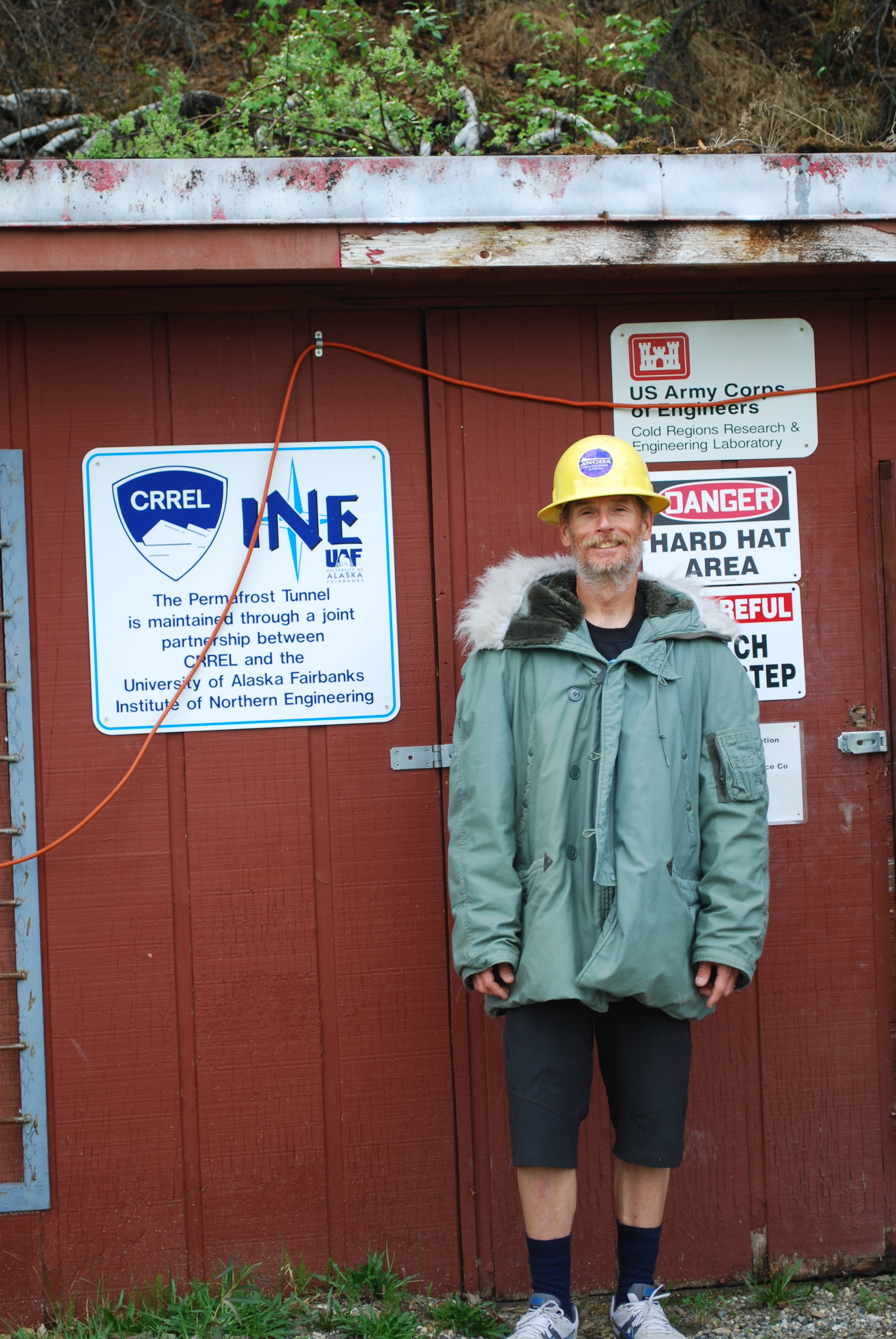 John Wood poses outside of the CRREL Permafrost Tunnel in Fox, Alaska.