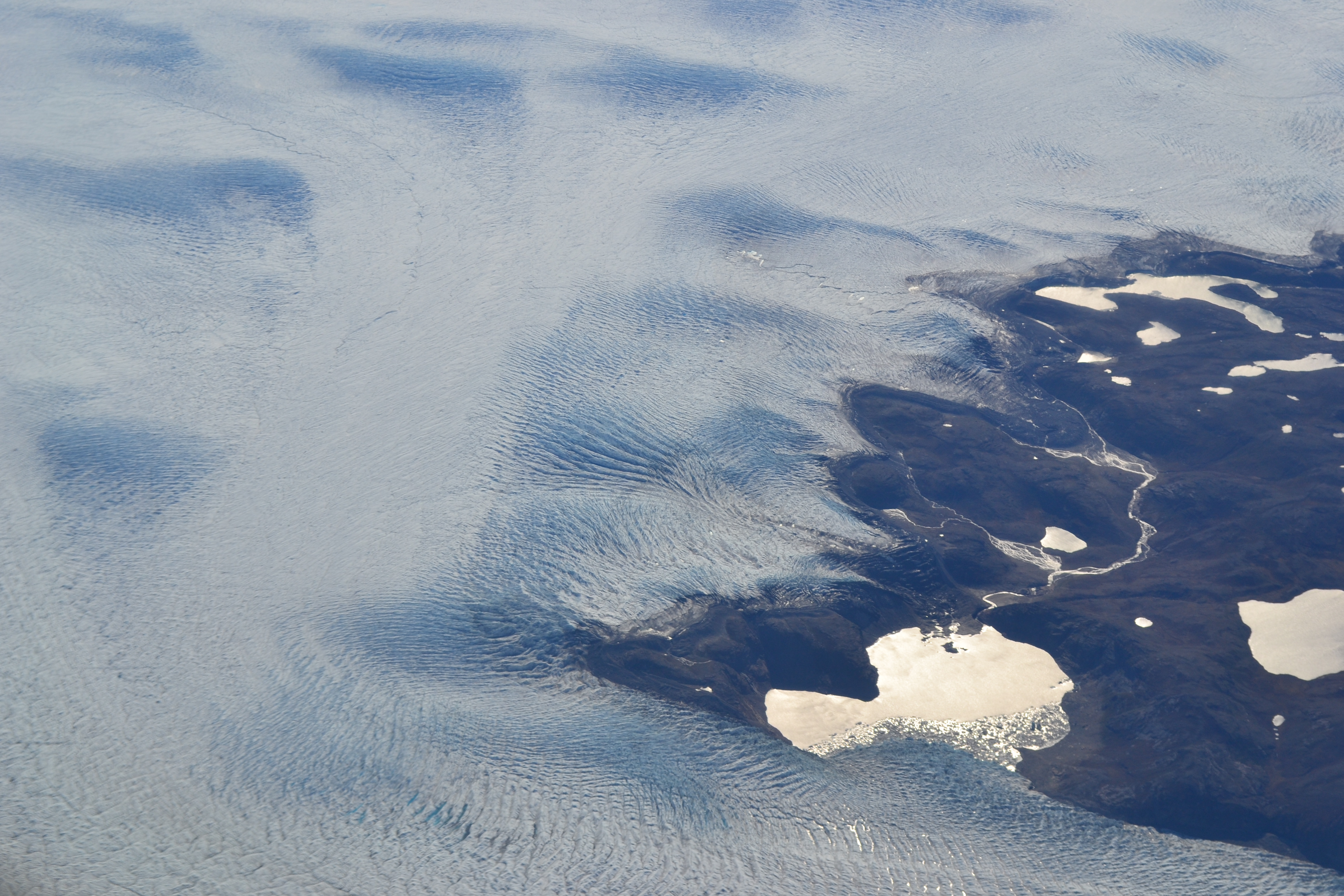 The edge of the Greenland Ice Sheet as seen from an LC-130 plane. Near Kangerlussuaq, Greenland.