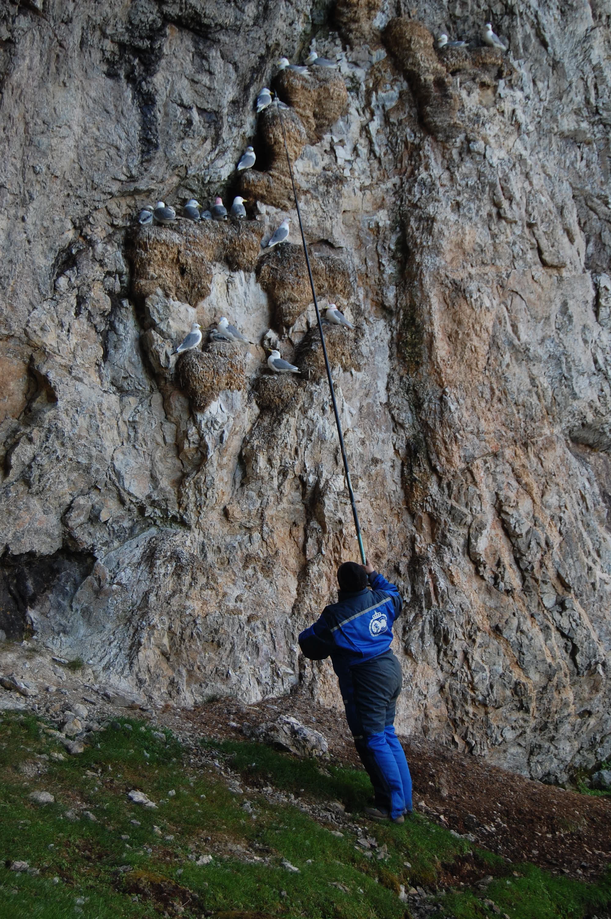 Mark Goldner: "To capture the bird, Rebecca Young uses a very long fishing pole with a small noose made of fine filament. She carefully puts the noose up to the bird's head." Ny Ă…lesund, Svalbard, Norway.