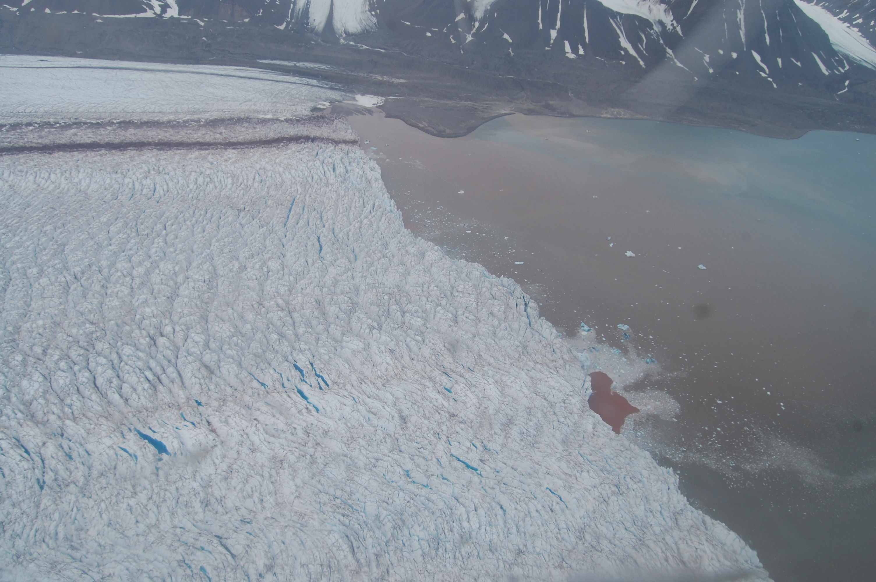 An aerial view of Kongsbreen Glacier. Ny Ă…lesund, Svalbard, Norway.