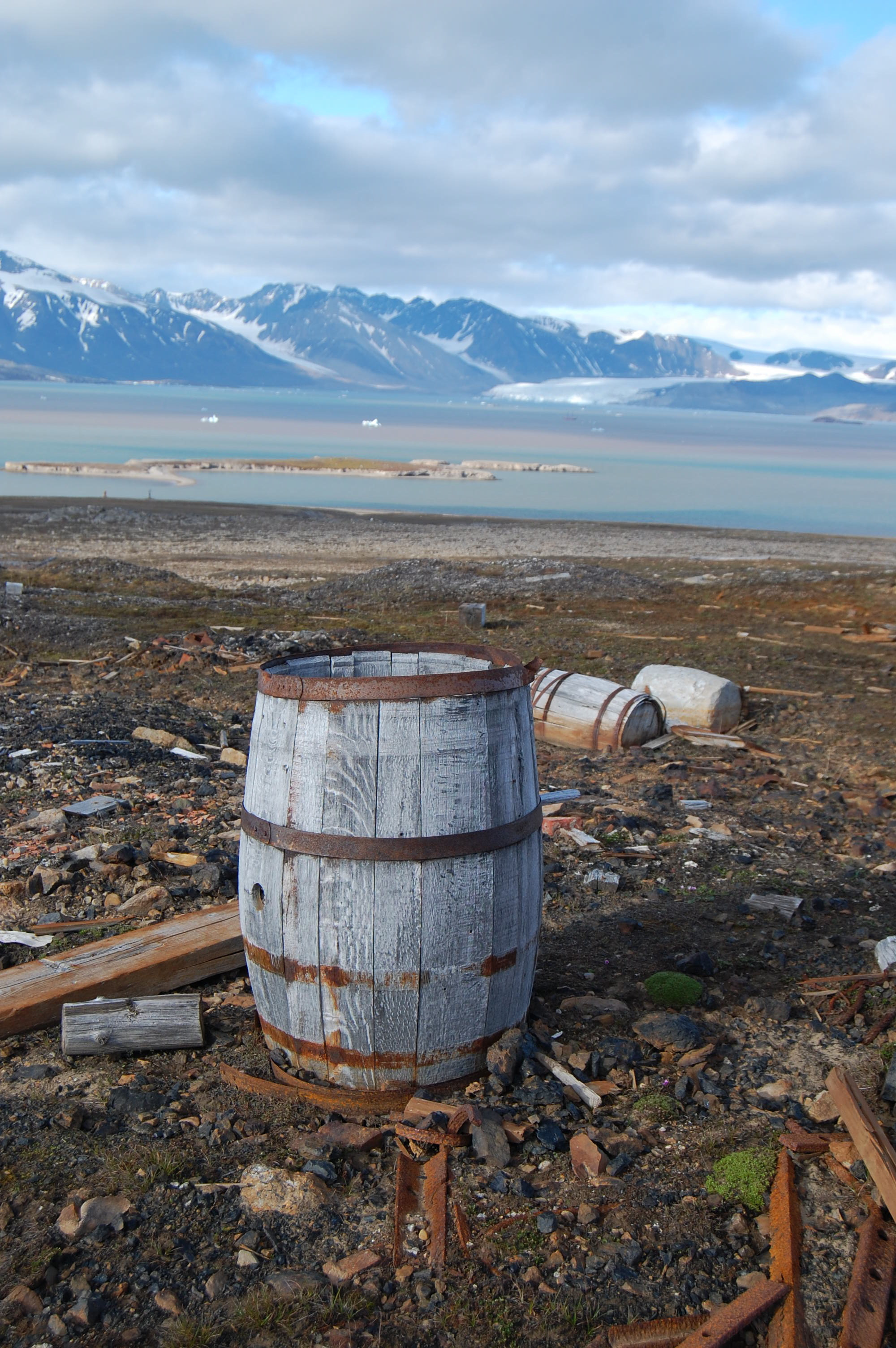 A barrel found outside Ny Ålesund, Svalbard – one of the many artifacts from the coal mining days. Ny Ålesund, Svalbard, Norway.