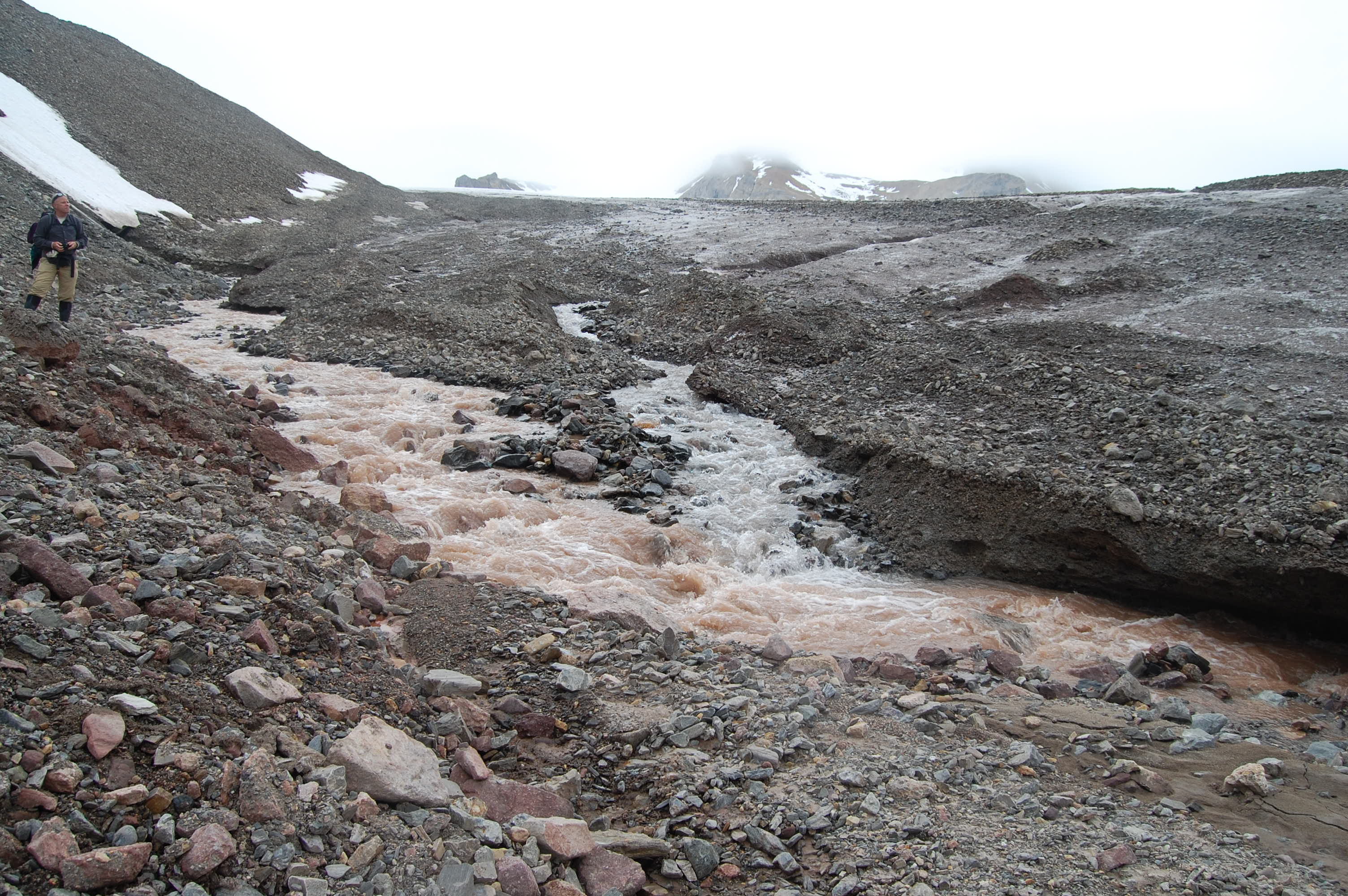 Two streams meet – one came from under the glacier, and the other came from on top of the glacier. Ny Ålesund, Svalbard, Norway.