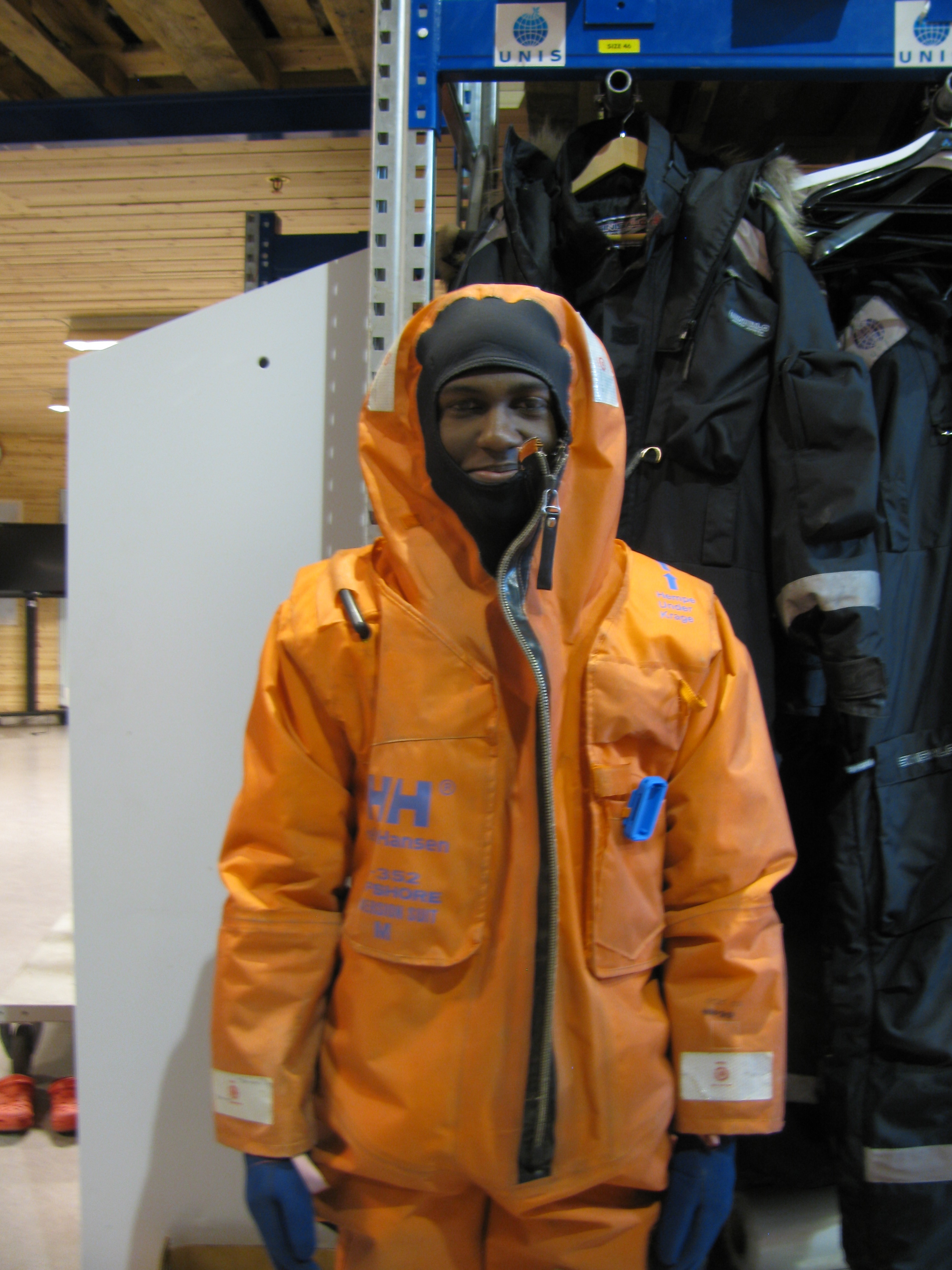 Daren McGregor in his survival suit. Longyearbyen, Svalbard, Norway.
