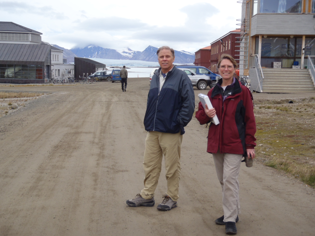 Researchers Ross Powell and Julie Brigham-Grette in Ny Ă…lesund, Svalbard, Norway.