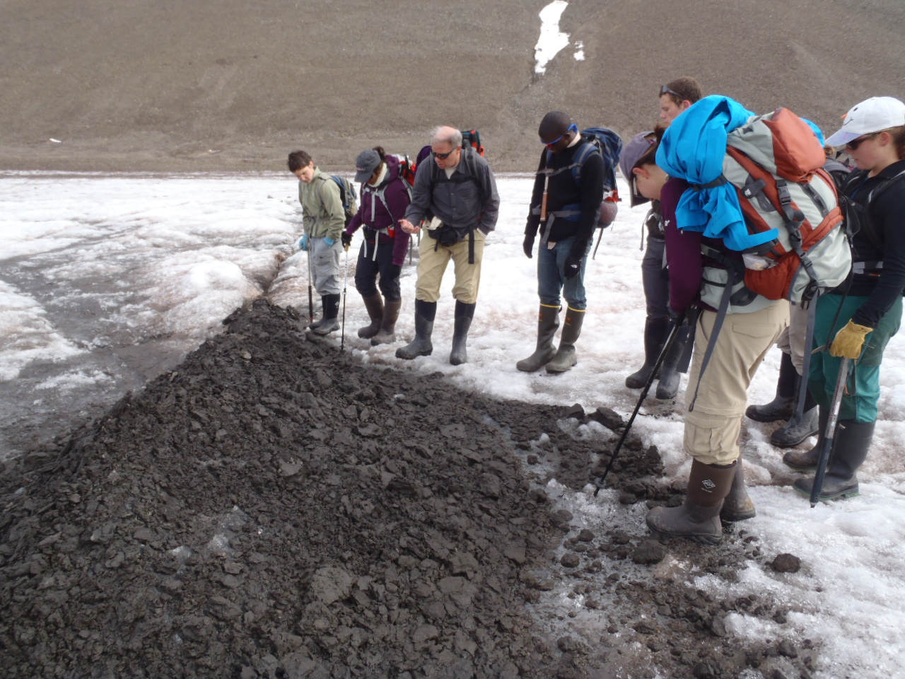 A mound of organic material on the glacier surface. Ny Ă…lesund, Svalbard, Norway.