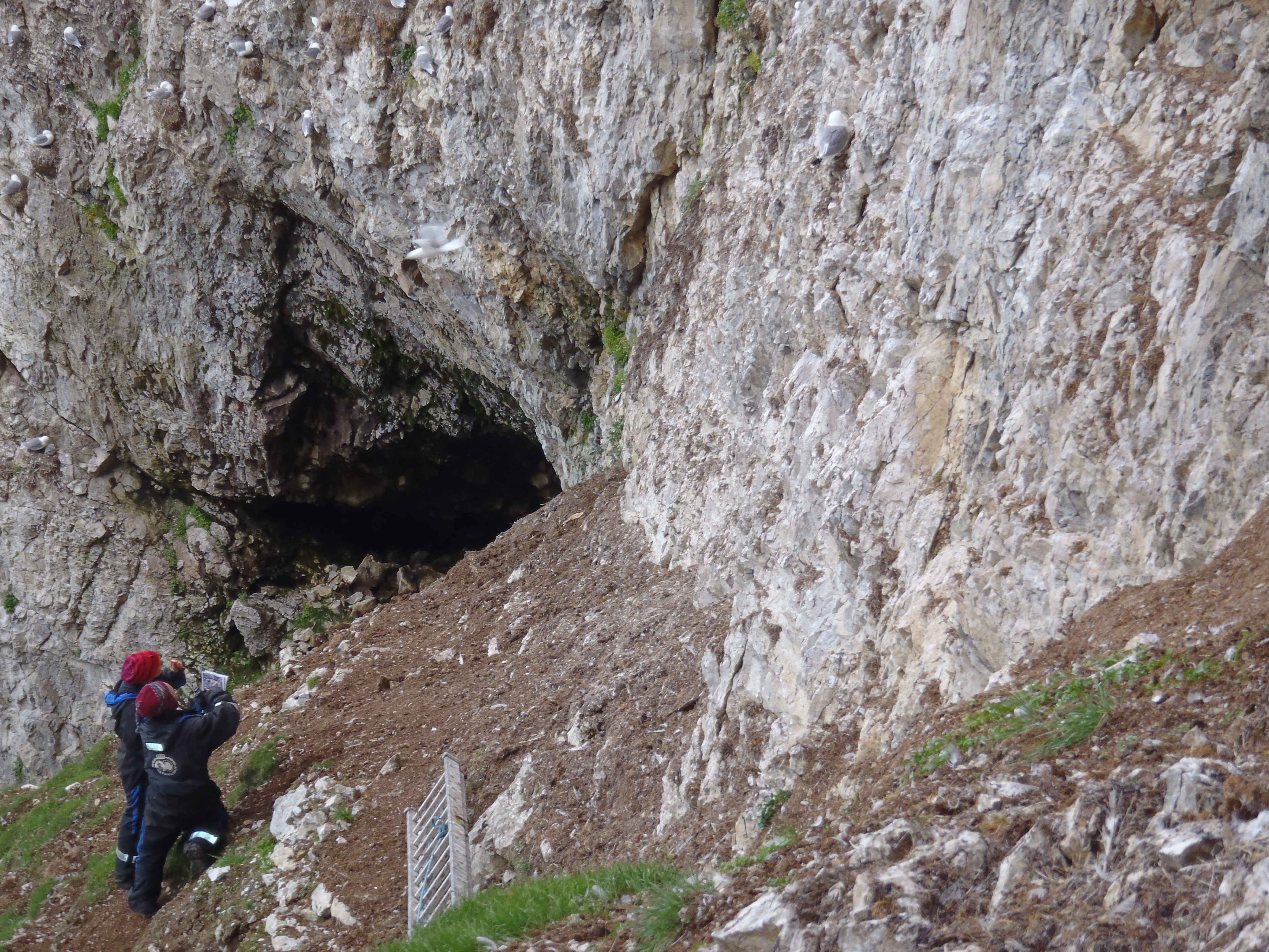 The bird team looks for kittiwake nests. Ny Ă…lesund, Svalbard, Norway.
