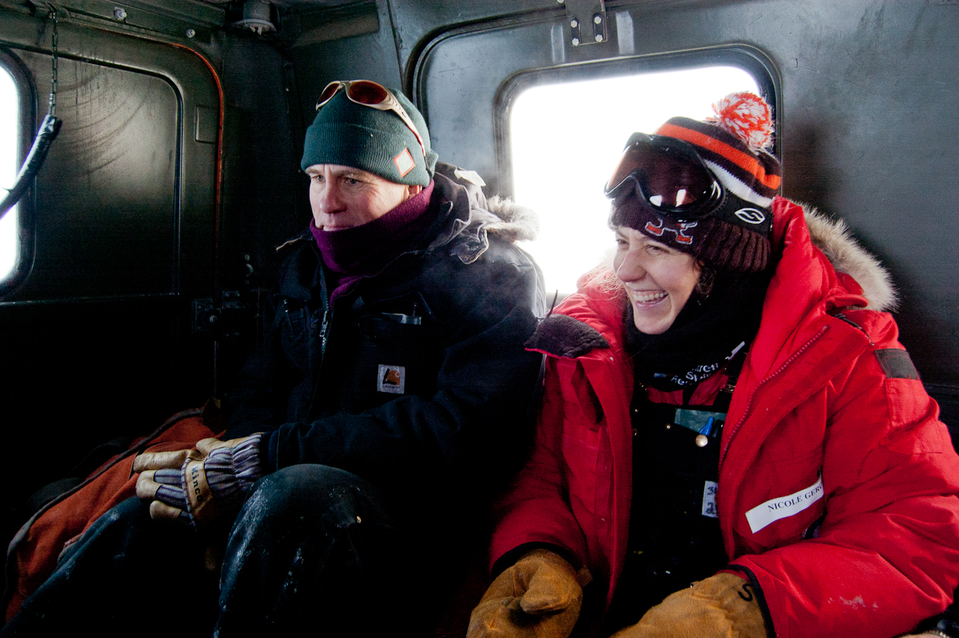 Michael League: "Nikki and Paul have a great time in the back of the Hagglund. It was a great group!" McMurdo Station, Antarctica.