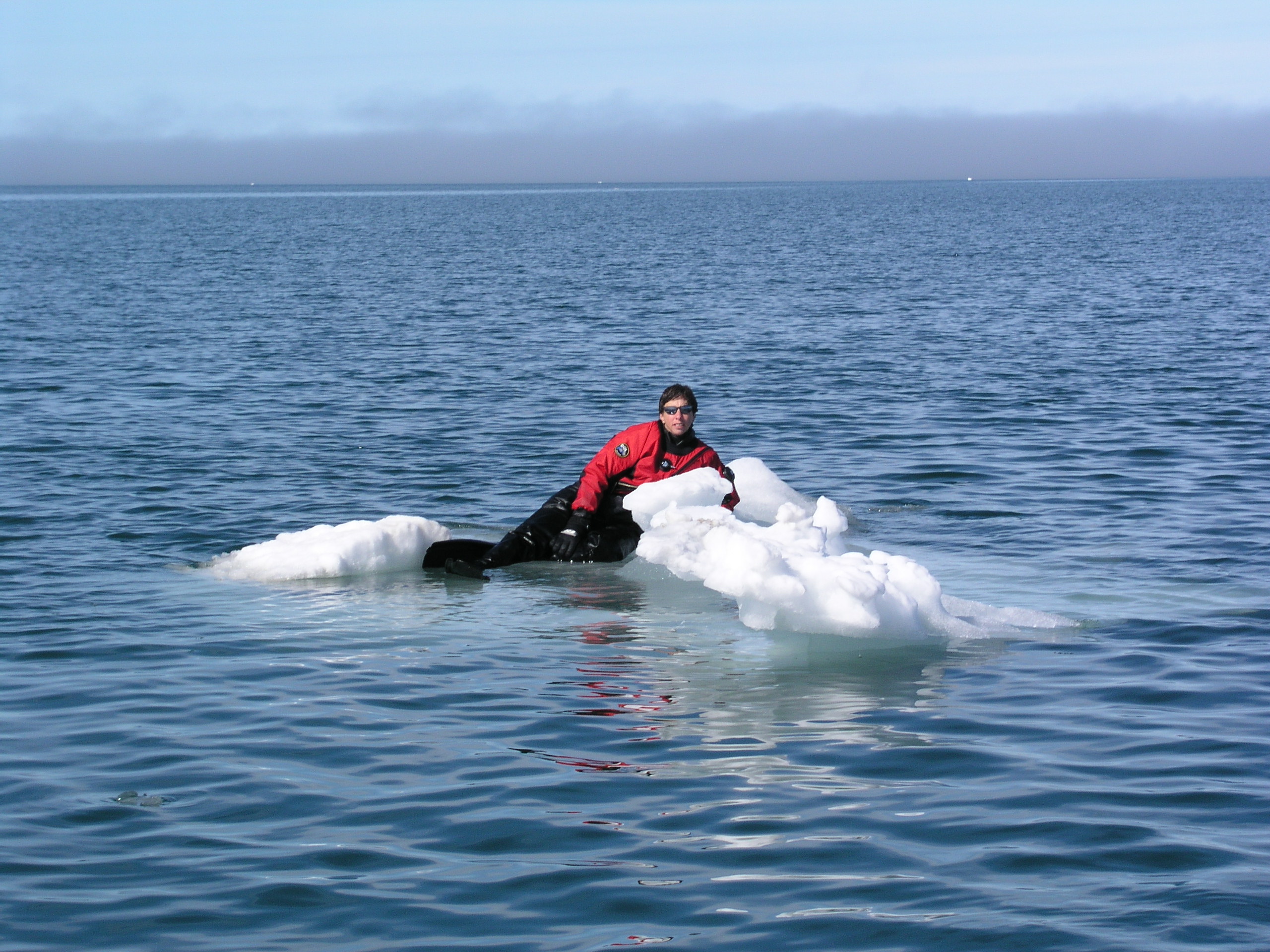 Dr. Brenda Konar lounges on the ice. McMurdo Station, Antarctica.