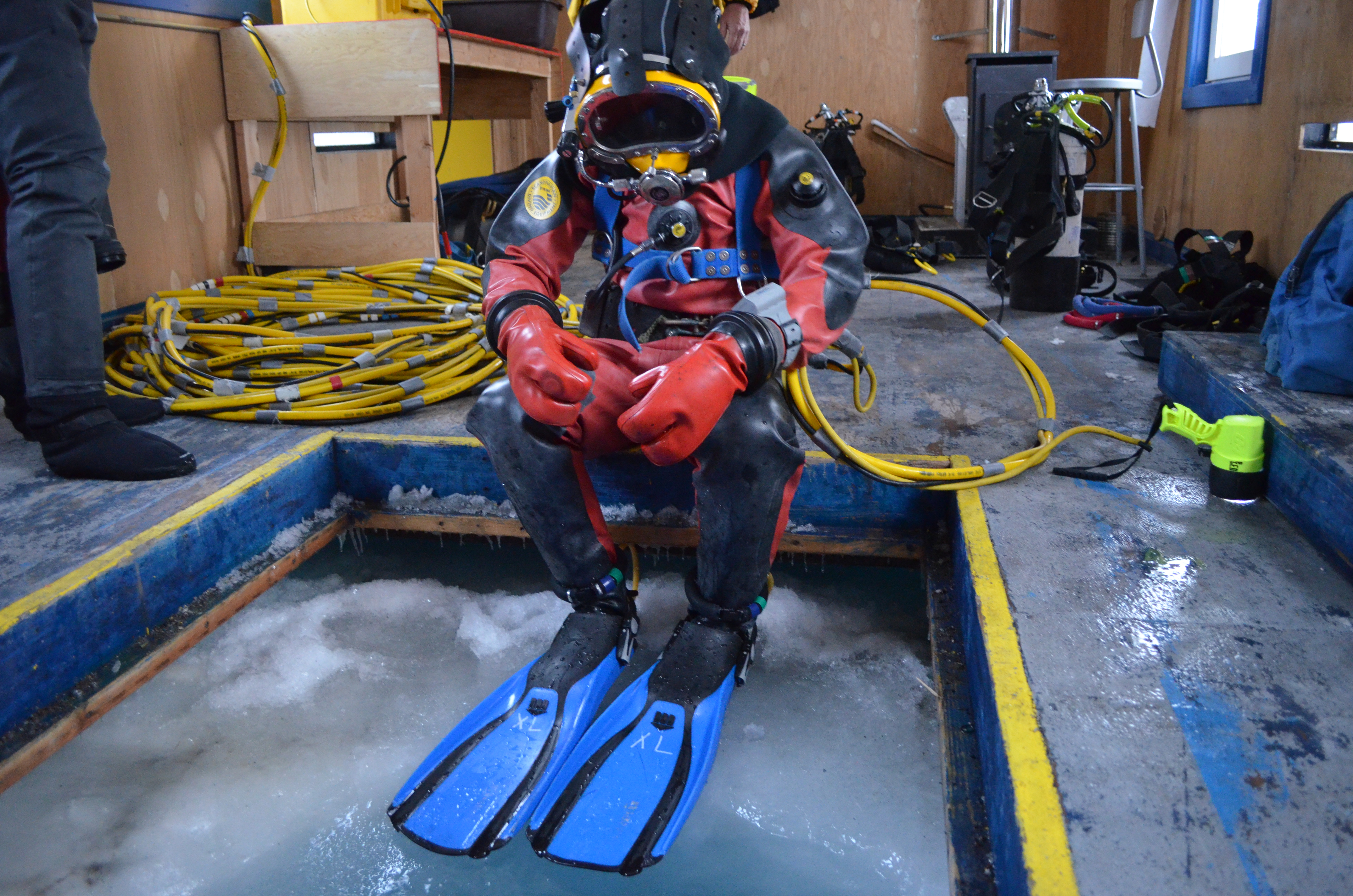 Michael League waits for the okay to plunge. McMurdo Station, Antarctica.