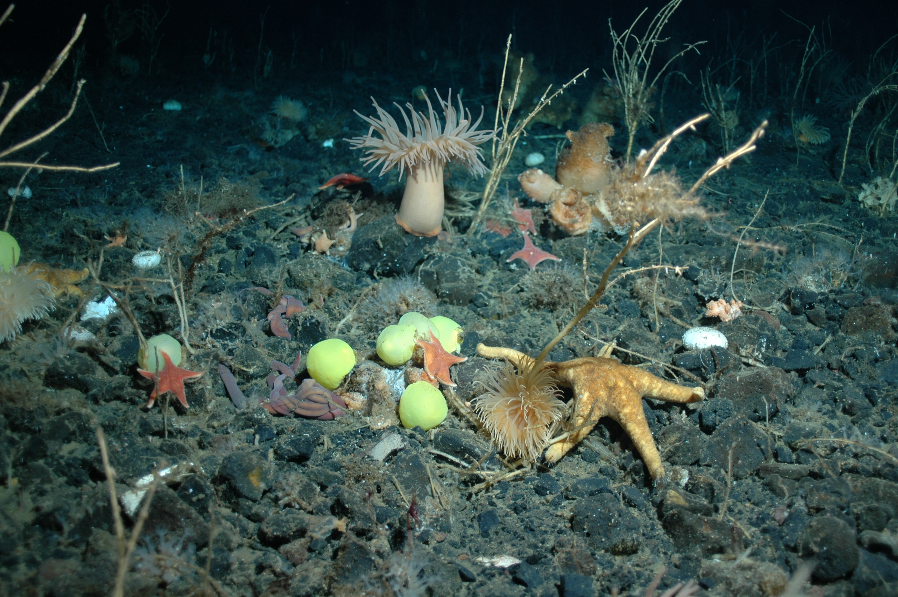 Michael League: "These yellow objects that look like tennis balls are actually gastropods or snails. These snails have evolved with no shell." McMurdo Station, Antarctica.