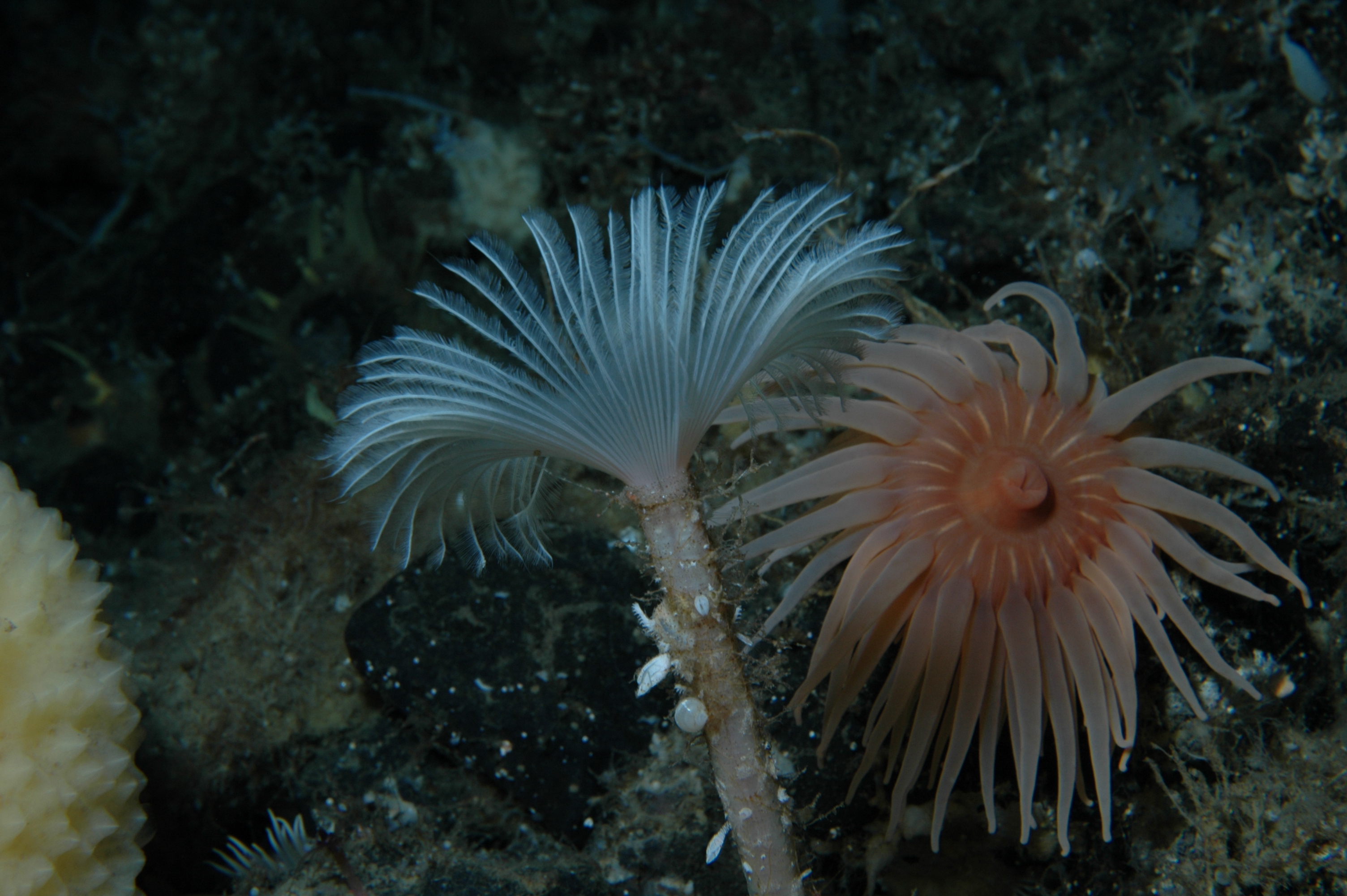 Polychaete worms, like this featherduster worm (Perkinsiana sp.) are in the phylum Annelida. McMurdo Station, Antarctica.